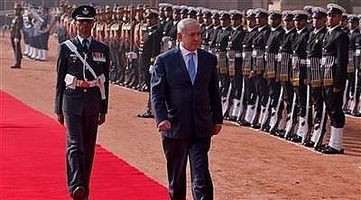وهذه أول زيارة لرئيس حكومة إسرائيلي إلى الهند منذ 15 عاماً. وكان في استقبال نتانياهو وزوجته سارة في مطار نيودلهي رئيس الوزراء الهندي ناريندرا مودي، الذي كان أول رئيس حكومة هندي يزور إسرائيل في يوليو الماضي.