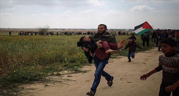 ويتجمهر عشرات الآلاف من الفلسطينيين منذ صباح اليوم، في عدة مواقع بالقرب من السياج الفاصل بين القطاع وإسرائيل، تلبية لدعوة وجهتها فصائل فلسطينية، بمناسبة الذكرى الـ 42 لـ'يوم الأرض'.