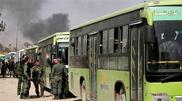 وأوضح أن '35 حافلة نقلت 1117 شخصاً إلى عفرين، بمحافظة حلب، فيما نقلت 39 آخرين إلى مخيم الركبان للاجئين قرب منطقة التنف'.
