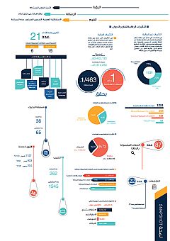 وبشأن الأعمال الرقابية التي أنجزها وتسهم في تحقيق قيمة مضافة أفاد (المحاسبة) بأنها بلغت 21 تقريرا قسمت حسب القطاعات المشمولة بالرقابة إلى 15 جهة حكومية و6 شركات واشتملت على مجالات الأنظمة المالية والمحاسبية ونشر الثقافة ومخرجات التعليم لسوق العمل والمشروعات الإنشائية ومجال التنمية المستدامة وتوفير الصحة الجيدة والرفاه فضلا عن البيئة البحرية والمحميات الطبيعية وعقود النظافة والإدارات العامة وكذلك النشاط التشغيلي للشركات.