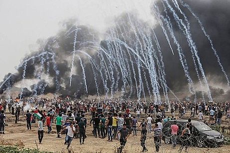وأصيب أكثر من 350 فلسطينياً بالرصاص الحي والاختناق جراء اعتداء جيش الاحتلال الإسرائيلي على المتظاهرين المشاركين في جمعة 'عمال فلسطين' ضمن فعاليات مسيرات العودة الكبرى على حدود قطاع غزة .