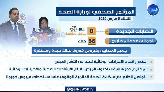 - لم يتم تسجيل أي حالة جديدة بالإصابة بفيروس كورونا في الكويت خلال ال 24 ساعة الأخيرة .