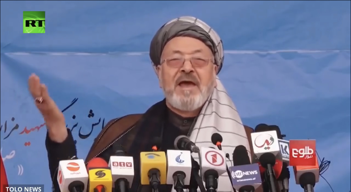 سجلت كاميرا وكالة "طلوع نيوز" الأفغانية لحظة إطلاق النار أثناء كلمة رئيس مجلس الشورى الأعلى للسلام في أفغانستان، كريم خليلي، خلال حفل أقيم في الذكرى السنوية لوفاة زعيم شيعي أفغاني.