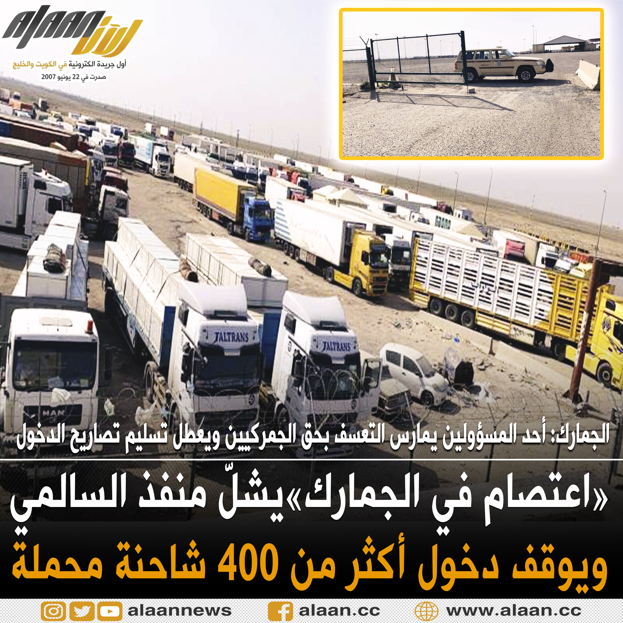 «عدم التنسيق بين الجهات الحكومية، وتعسف أحد القياديين في وزارة الداخلية في منع رجال جمارك السالمي من دخول المنفذ دون حمل هوية العمل ومنع دخول سياراتهم للمنفذ وتركهم يسيرون مسافة طويلة للوصول لمكاتبهم في هذه الظروف المناخية» نتج عنه اتخاذ الجمركيين قرارا بالاعتصام في سكنهم وامتناعهم عن العمل منذ الصباح الباكر، مما أدى الى شلل المنفذ وتوقف دخول أكثر من 400 شاحنة محملة بالمواد الغذائية والإنشائية إلى البلاد.