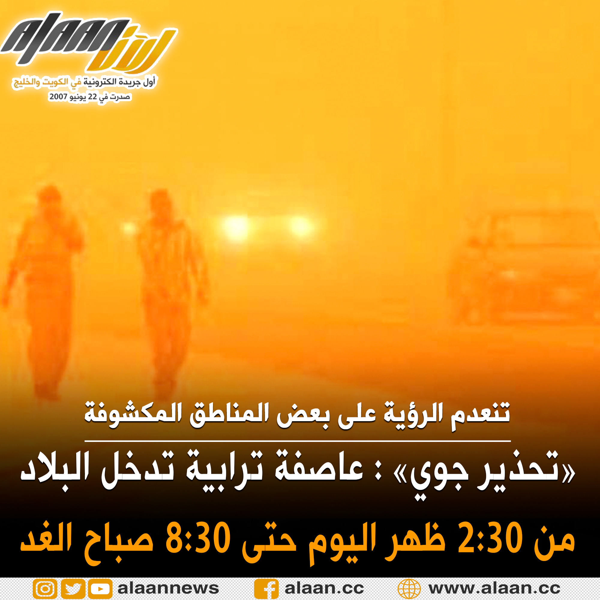 فيما صرحت الادارة العامة للطيران المدني ونوهت على ضرورة توخي الحذر والحيطة بسبب انعدم الرؤية على بعض المناطق المكشوفة وانخفاض لما دون 500م على مناطق أخرى في التحذير الجوي التالي نصه