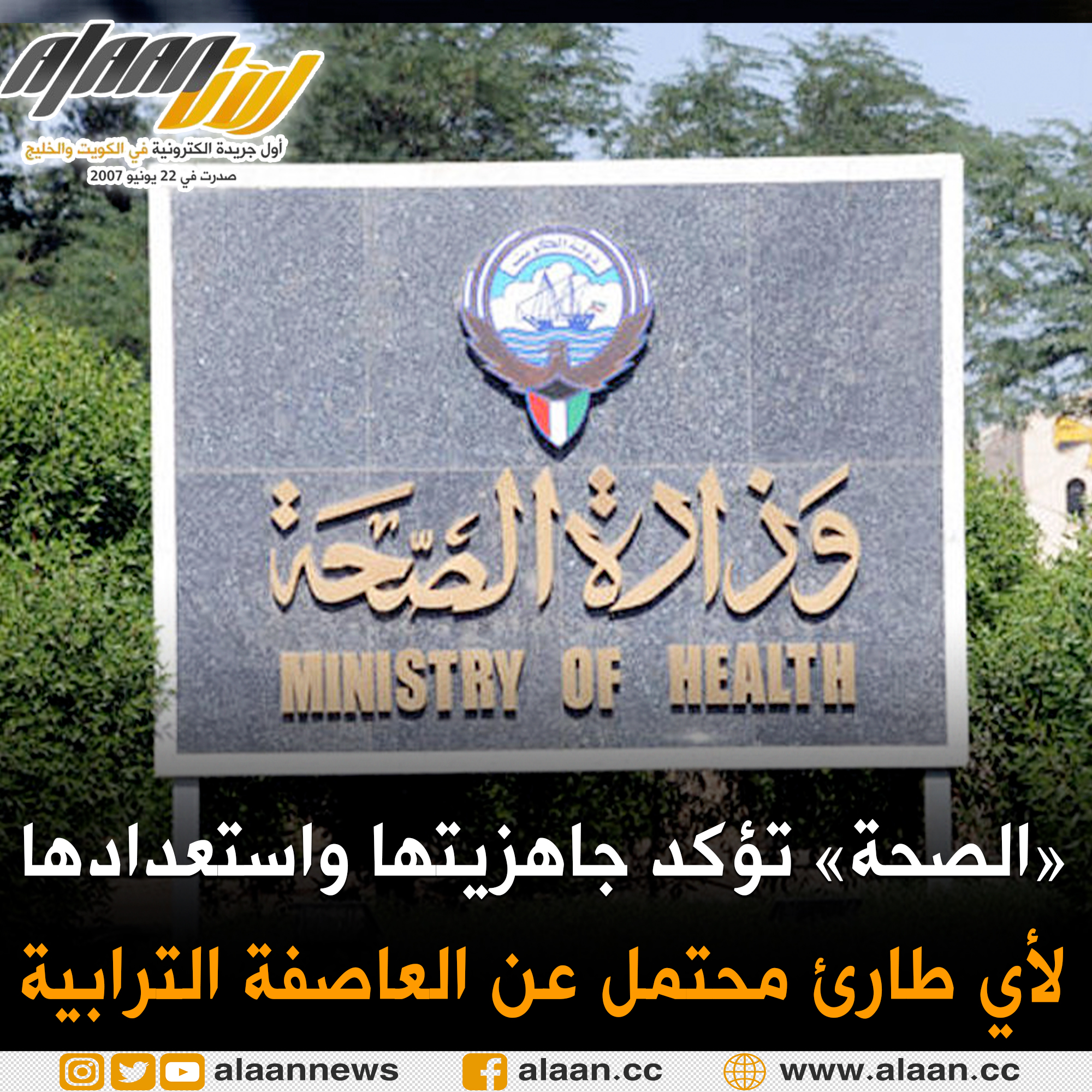 أكدت وزارة الصحة جاهزيتها واستعدادها تحسبا لأي طارئ تزامنا مع تحذير إدارة الأرصاد الجوية من احتمال حدوث عاصفة ترابية في بعض المناطق في البلاد داعية المواطنين والمقيمين إلى توخي الحيطة والحذر.