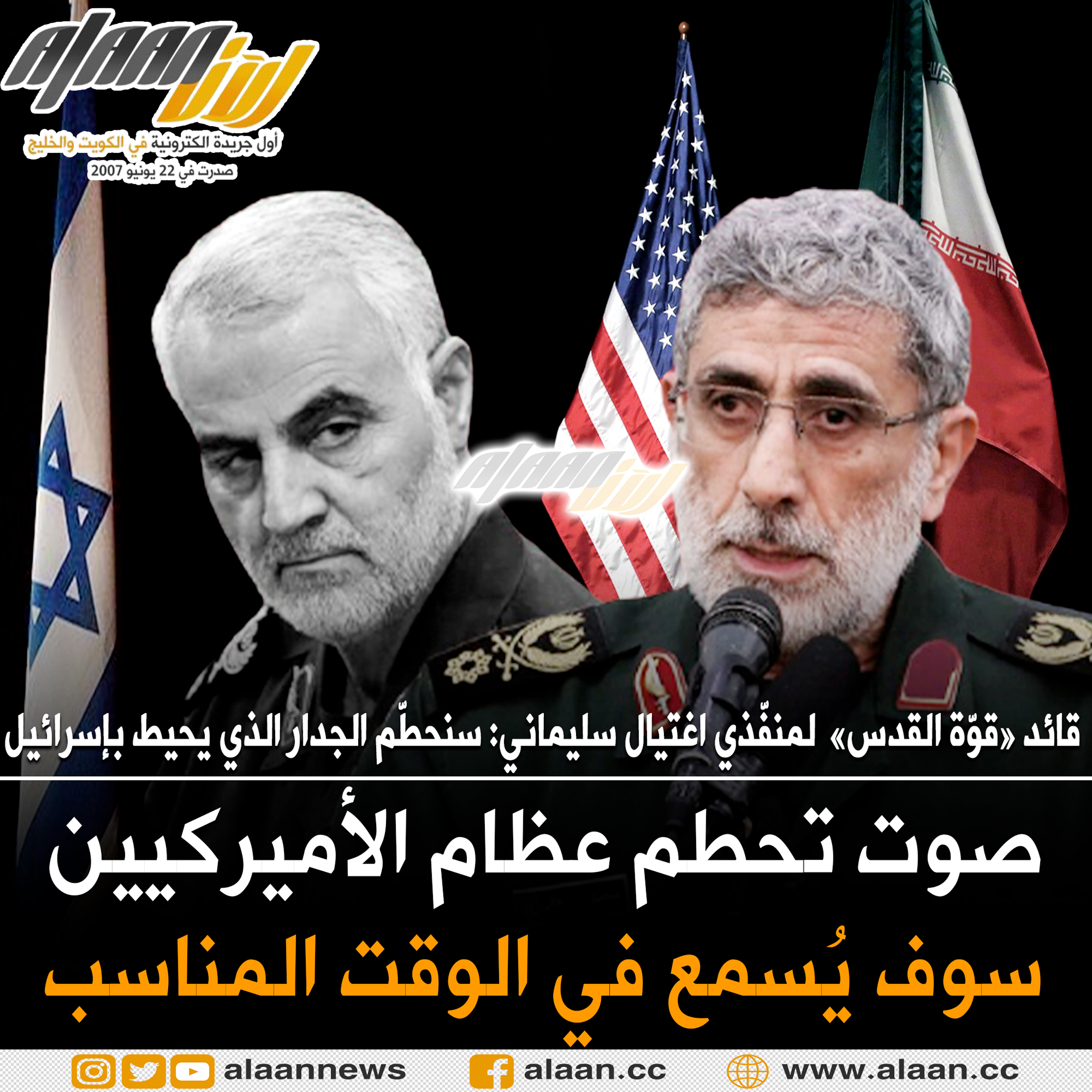 حذّر قائد «قوّة القدس» في حرس الثورة الإيراني، الجنرال إسماعيل قاآني، اليوم، من أنّ «صوت تحطّم عظام الأميركيين سيُسمع في الوقت المناسب».