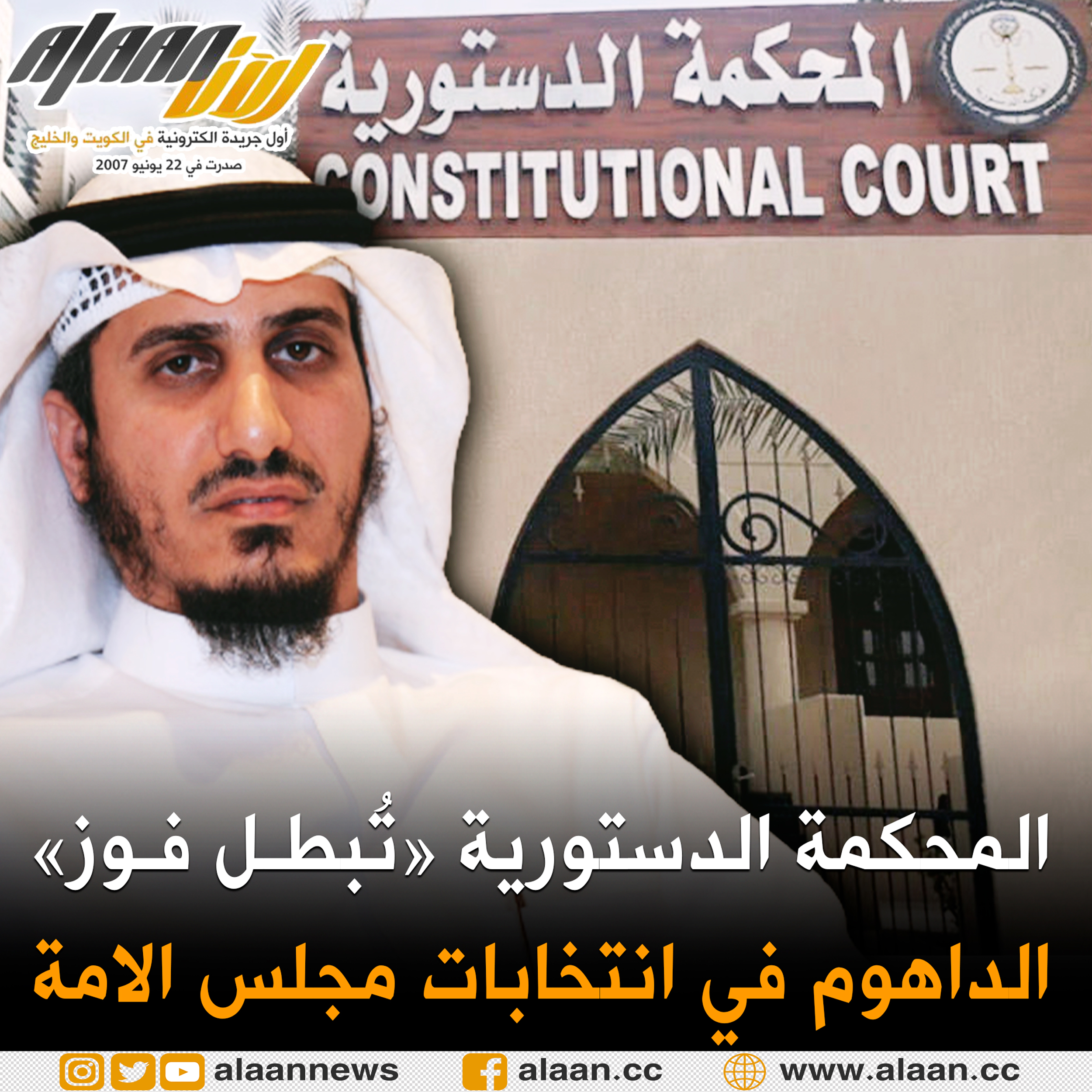 قضت المحكمة الدستورية الكويتية برئاسة المستشار محمد بن ناجي اليوم الأحد بإبطال فوز المطعون ضده بدر زايد الداهوم في انتخابات مجلس الامة التي اجريت في ال5 من ديسمبر الماضي وبعدم صحة عضويته في مجلس الامة مع ما يترتب على ذلك من آثار اخصها اعادة الانتخاب مجددا في الدائرة الخامسة لشغل المقعد الانتخابي الذي حصل عليه.