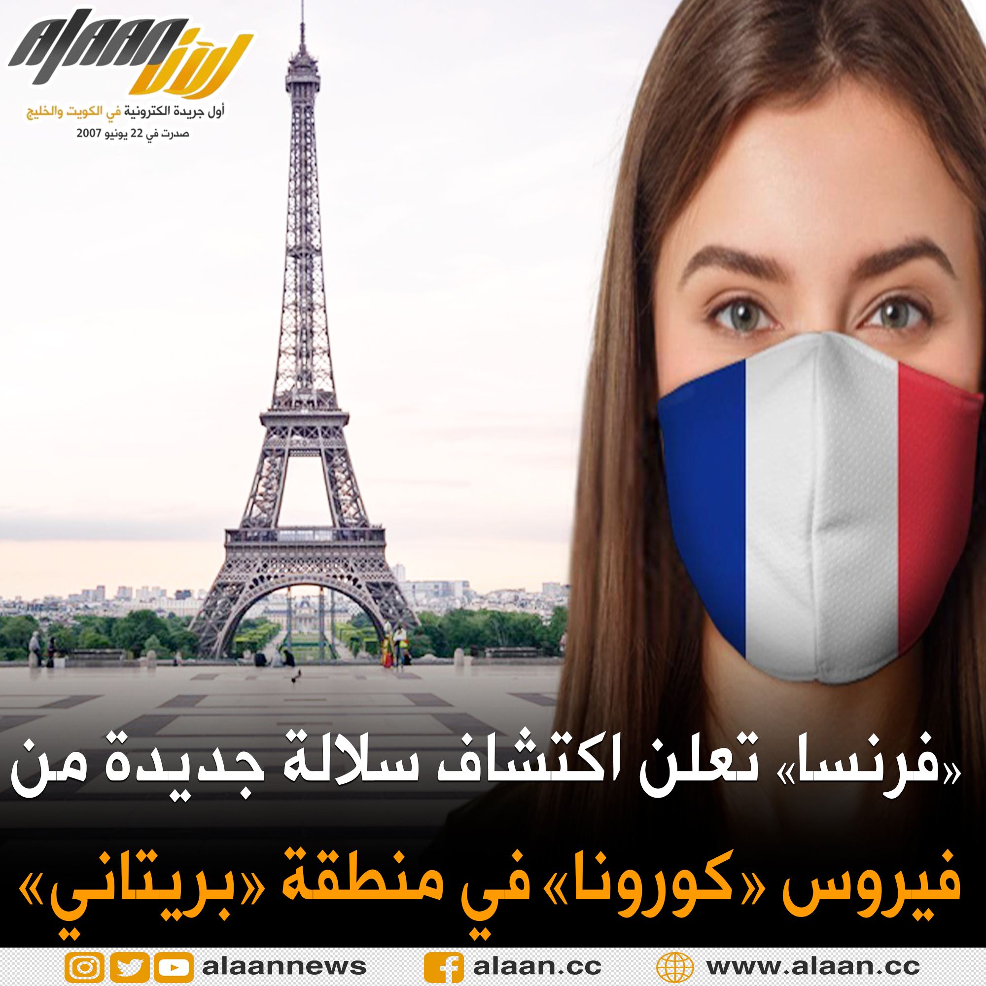 قالت وزارة الصحة الفرنسية في بيان في وقت متأخر من مساء أمس، إن سلالة جديدة من فيروس كورونا ظهرت في منطقة #بريتاني وأضافت أن التحاليل الأولية لم توضح أن هذه السلالة أكثر خطورة أو أسرع انتشارا من غيرها. ووفقًا للمعلومات الأولية ، فهي ليست معدية أو أكثر خطورة من الأنواع الأخرى .