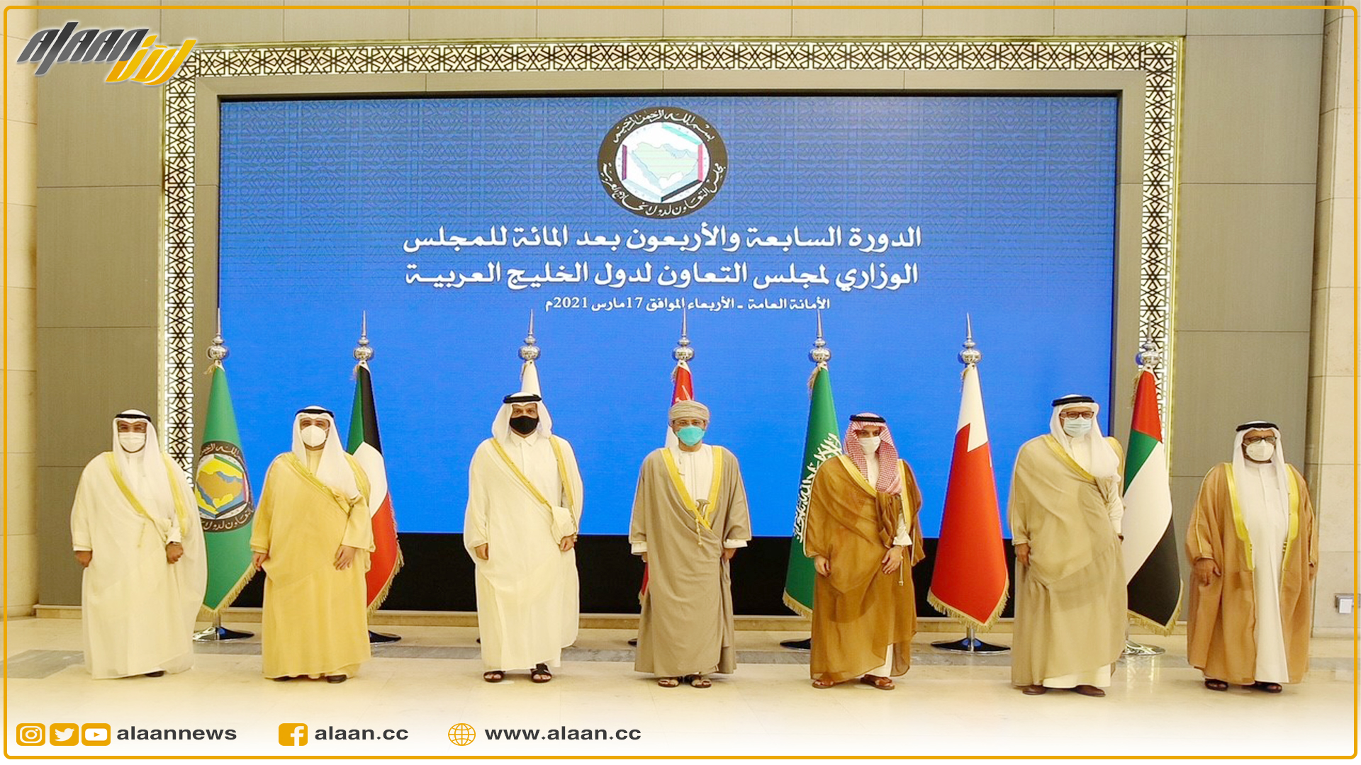 ترأس معالي الشيخ الدكتور أحمد ناصر المحمد الصباح، وزير الخارجية ووزير الدولة لشؤون مجلس الوزراء، وفد دولة الكويت المشارك في أعمال الاجتماع الوزاري لمجلس التعاون لدول الخليج العربية في دورته (147) العادية، والذي عقد اليوم الأربعاء الموافق 17 مارس 2021 في مقر الأمانة العامة بالرياض، حيث تم خلال الاجتماع مناقشة واستعراض كافة البنود المدرجة على جدول الأعمال والقرارات والتوصيات المعنية بدعم وتعزيز مسيرة العمل الخليجي المشترك في مختلف المجالات السياسية والاقتصادية والاجتماعية، وما تضمنته البنود المدرجة كذلك من قضايا ومواضيع تتعلق بالتطورات الراهنة في المنطقة.