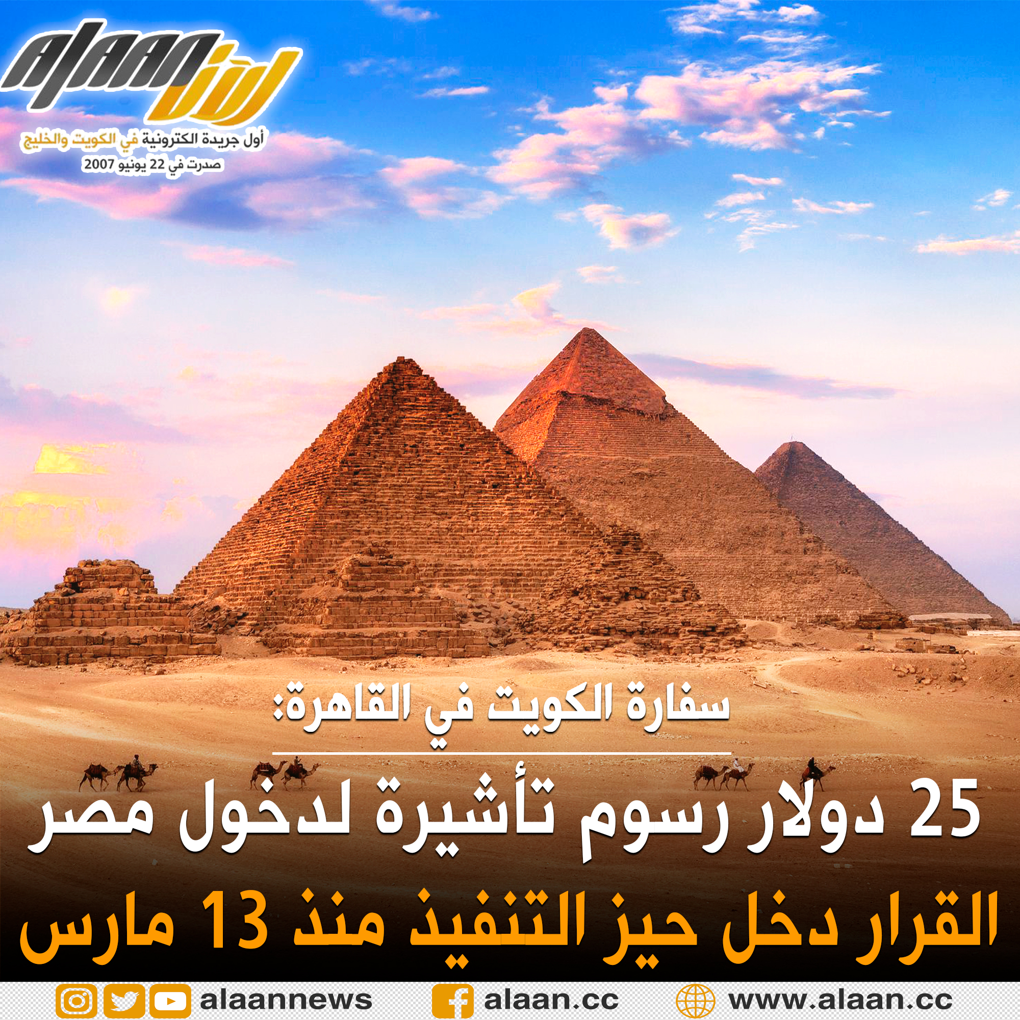 سفارة #الكويت في #القاهرة: السلطات المصرية فرضت رسوم #تأشيرة دخول بمبلغ وقدره 25 دولارا على جميع مواطني #الدول_العربية