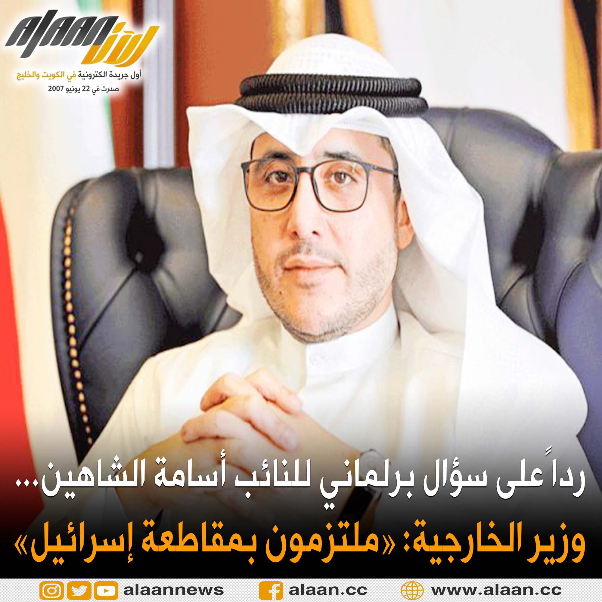 وزير الخارجية وزير الدولة لشؤون #مجلس_الوزراء الشيخ الدكتور #أحمد_الناصر :«ملتزمون بمقاطعة #إسرائيل »