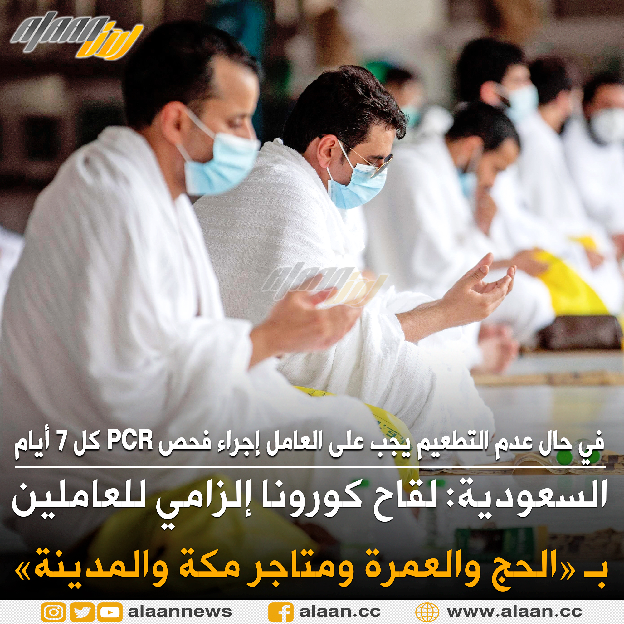#السعودية.. بدءًا من بداية شهر #رمضان ... اللقاح إلزامي للعاملين بـ#الحج و #العمرة" ومتاجر #مكة و #المدينة_المنورة