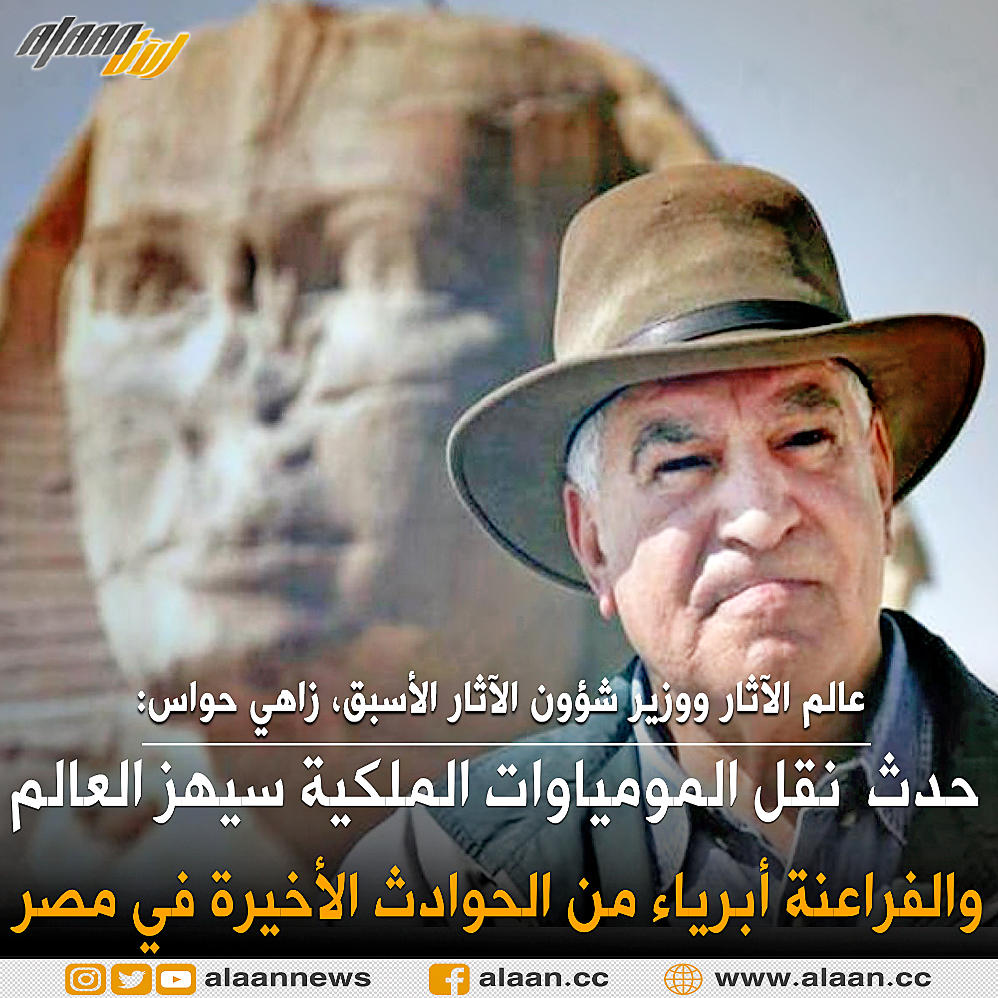 كشف عالم الآثار المصري، ووزير شؤون الآثار الأسبق، زاهي حواس، حقيقة ما تردد بقوة على مواقع التواصل الاجتماعي في مصر حول أن ”لعنة الفراعنة“ وراء الحوادث الكثيرة الدموية التي شهدتها مصر مؤخرًا، وأبرزها حادث قطاري سوهاج، وانهيار عقار بمنطقة جسر السويس، وجنوح سفينة بقناة السويس، وذلك بعد القرار المصري بنقل المومياوات الملكية في موكب ضخم إلى متحف الحضارة بدلًا من المتحف المصري.
