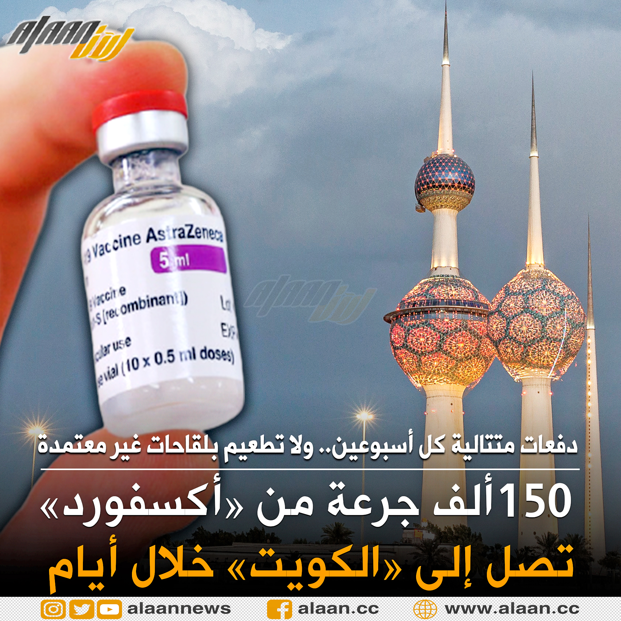 دفعة ثانية من لقاح "استرازينيكا" تقدر بنحو 150 ألف جرعة تصل الكويت خلال أيام