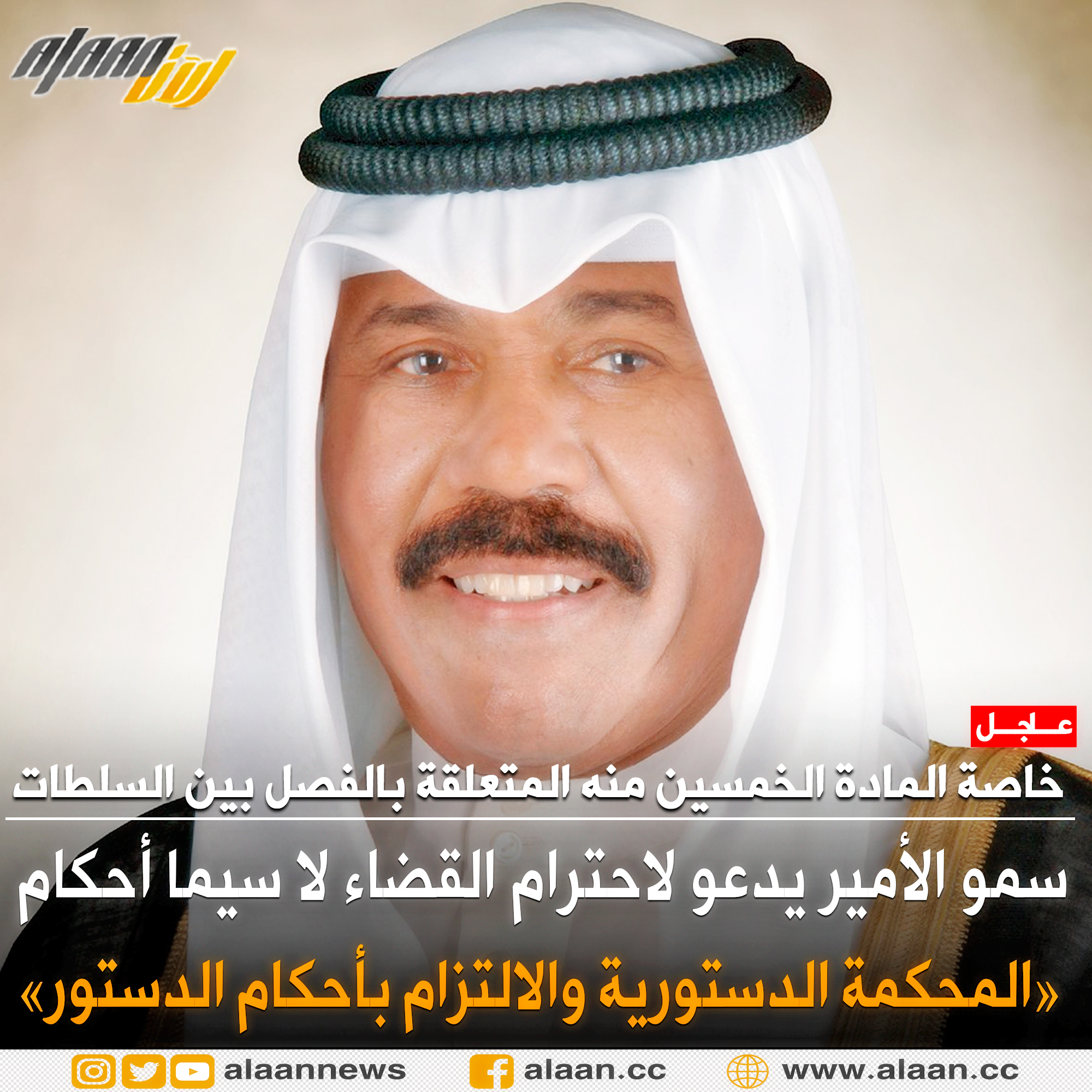 سمو الأمير يدعو إلى احترام القضاء لا سيما أحكام المحكمة الدستورية والالتزام بأحكام الدستور خاصة المادة الخمسين منه المتعلقة بالفصل بين السلطات
