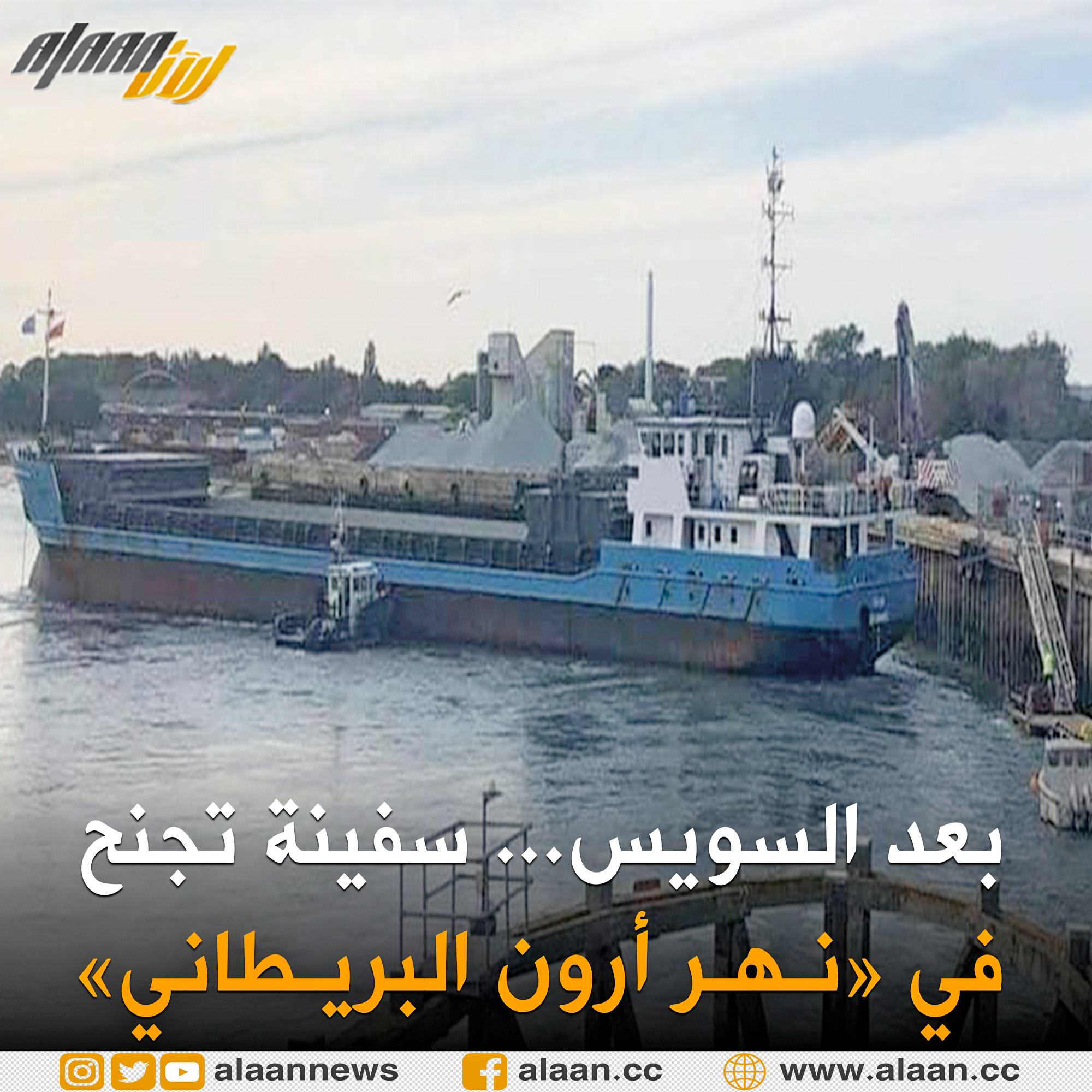 بعد أزمة #قناة_ السويس.. جنوح سفينة شحن بطول 80 متراً في #نهر_أرون البريطاني تسببت فى غلق الممر المائى للنهر