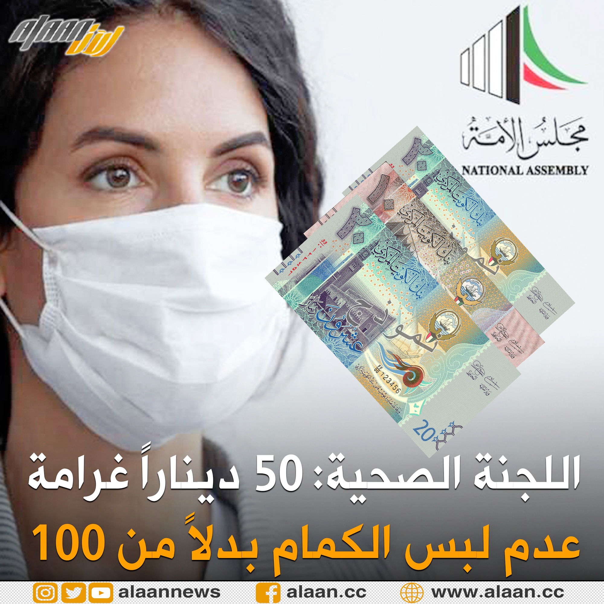 حسمت لجنة الشؤون الصحية البرلمانية الخلاف مع الجانب الحكومي على تعديلات احكام القانون رقم 8 لسنة 1969 بشأن الاحتياطات الصحية للوقاية من الامراض السارية، حيث انتهت الى تخفيف غرامة عدم ارتداء الكمام الى 50 ديناراً بدلاً من 100 دينار، كما خففت من التوسع في الضبطية القضائية.