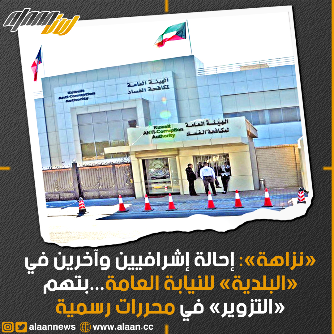 أعلنت الهيئة العامة لمكافحة الفساد الكويتية (نزاهة) اليوم الثلاثاء إحالة إشرافيين وآخرين في بلدية الكويت إلى النيابةالعامة بتهم ارتكاب جرائم التزوير في محررات رسمية.