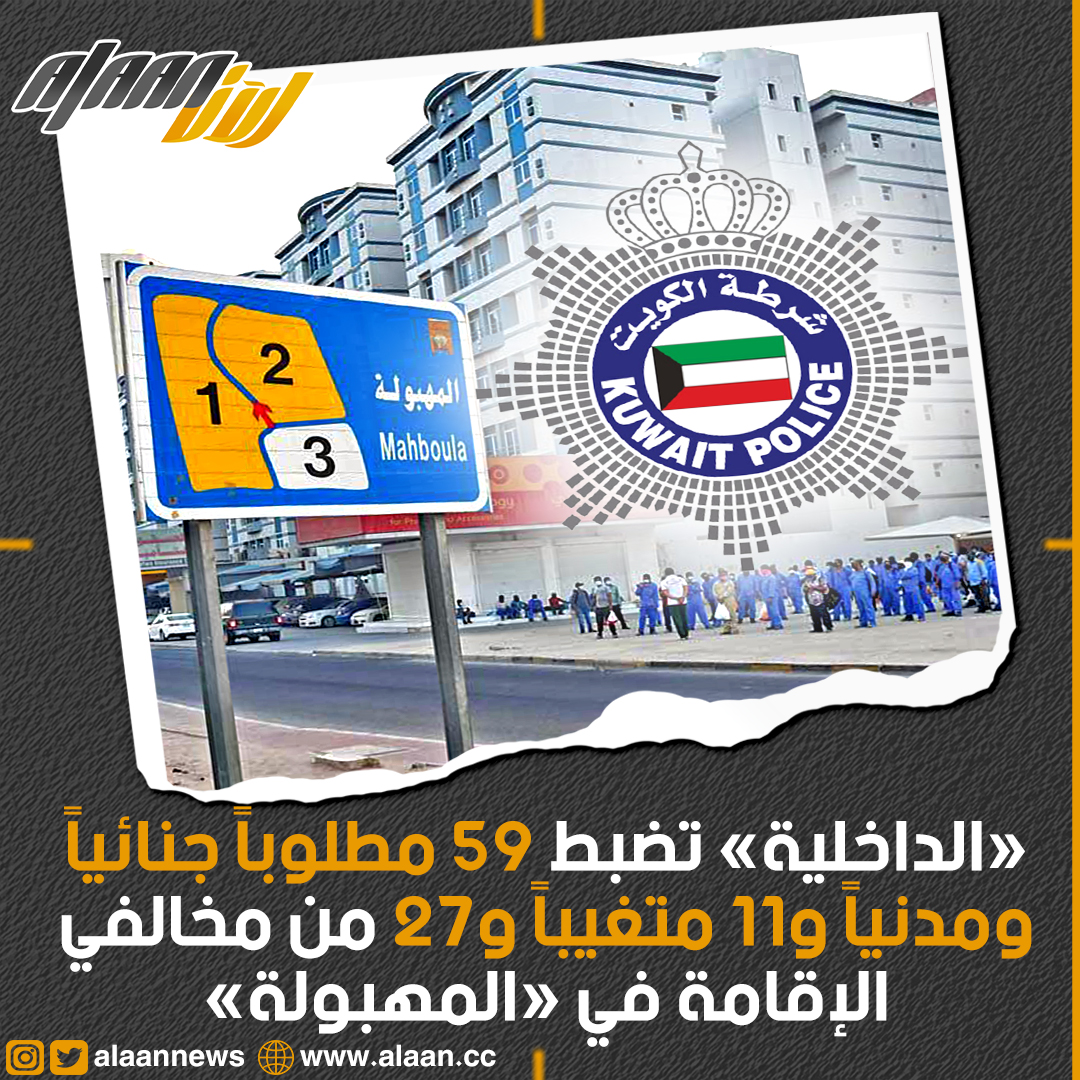الداخلية تضبط 59 مطلوب جنائي ومدني و11 متغيب و27 مخالف للإقامة في #المهبولة