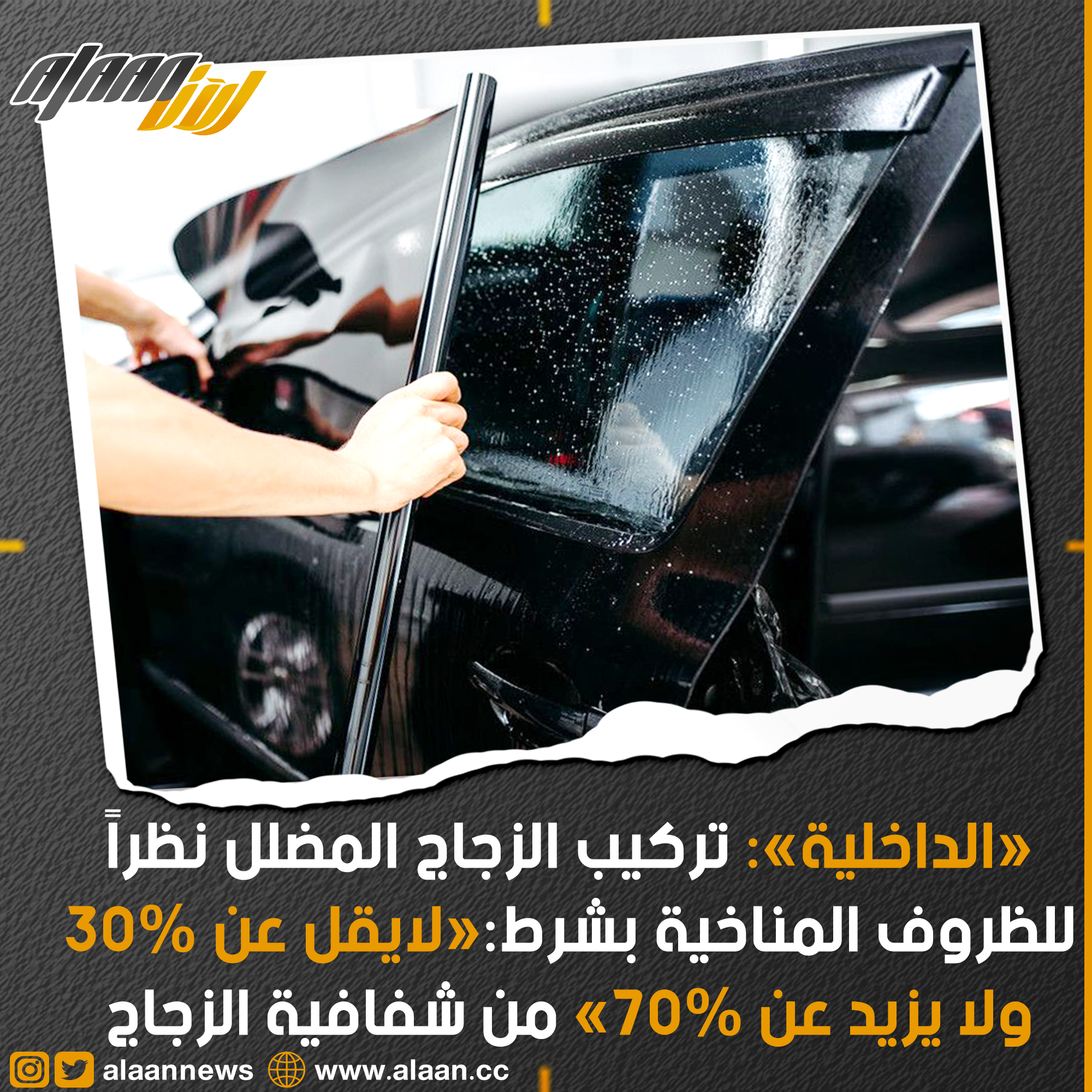السماح بالزجاج المضلل أو الملون بنسبة تتراوح بين 30-70% باستثناء الزجاج الأمامي و«حظر تركيب الزجاج العاكس»