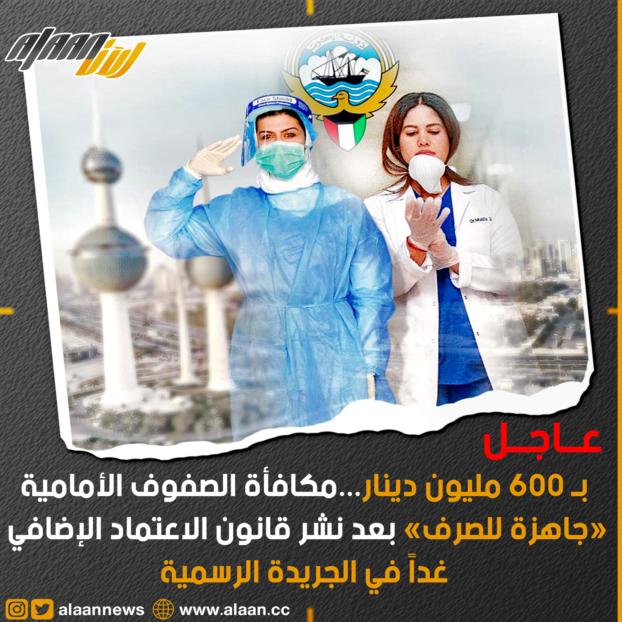 تنشر جريدة «الكويت اليوم» غداً الأحد، مرسوم القانون رقم 4 لسنة 2021 الخاص بربط ميزانية الوزارات والادارات الحكومية، والذي سيتم بموجبه فتح اعتماد اضافي بميزانية الوزارات والادارات الحكومية للسنة المالية «2020-2021»، بمبلغ 600 مليون دينار بميزانية وزارة المالية، على أن يؤخذ الاعتماد الاضافي من صندوق الاحتياطي العام.