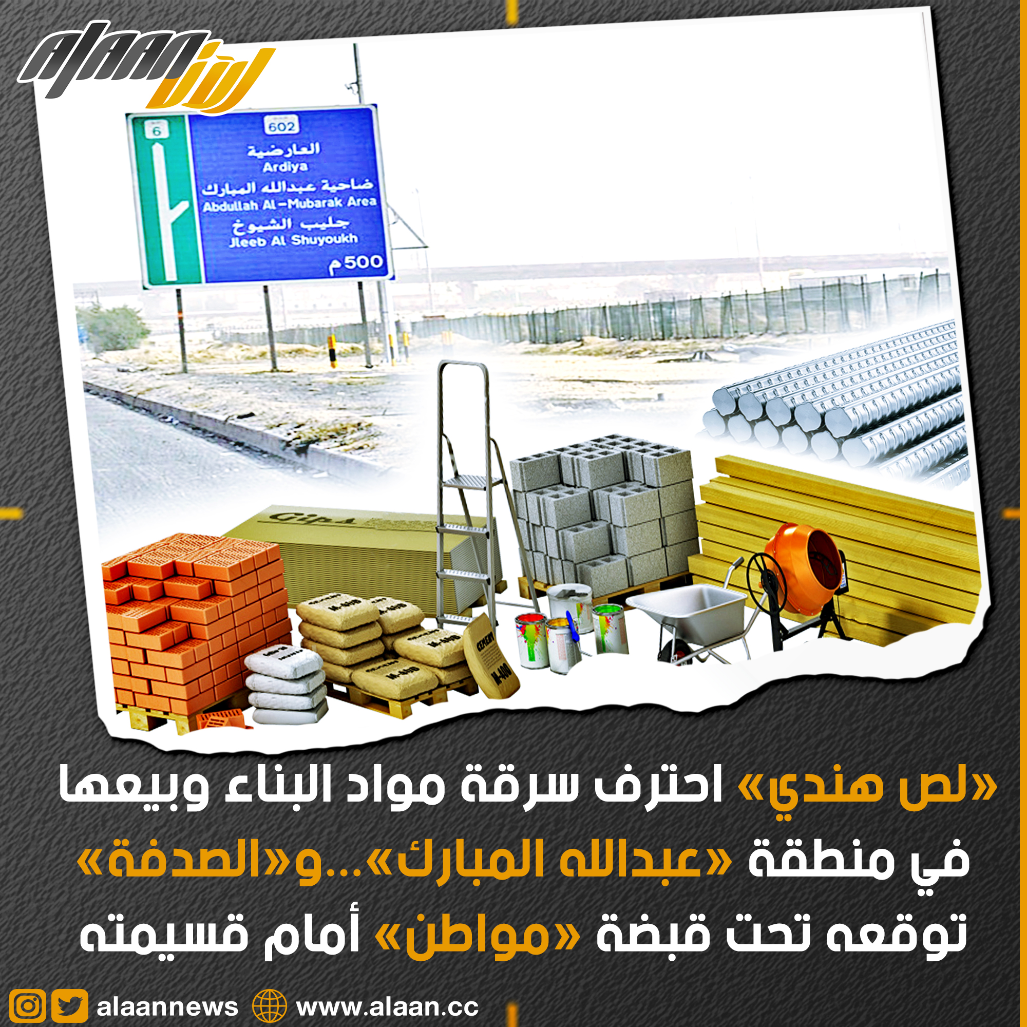 المواطن وخلال توجهه إلى قسيمته قيد الإنشاء في غرب عبدالله المبارك شاهد حركة غريبة من شخص لا يعرفه، ليتبين له أنه يقوم بسرقة مواد البناء ويضعها في سيارته، فأمسك به وأبلغ عنه عمليات وزارة الداخلية.