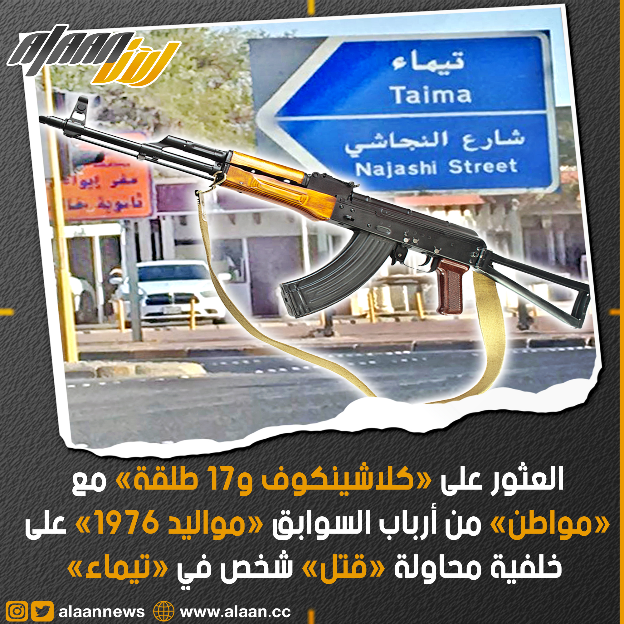محاولة تهجم وقتل تكشف عن مواطن أربعيني بحوزته #كلاشنكوف و17 طلقة في #تيماء
