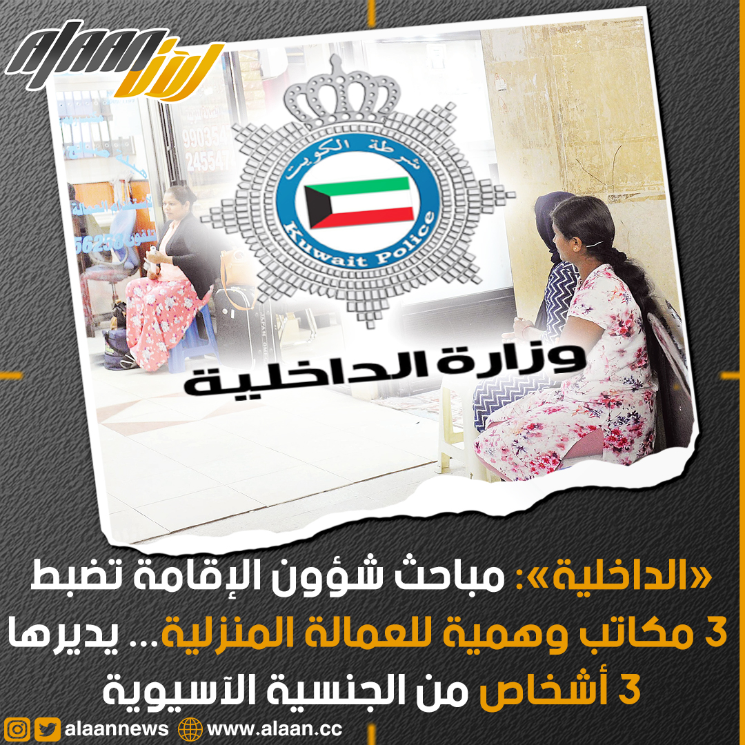 وأوضحت الإدارة أنه تم ضبط 3 مكاتب وهمية للعمالة المنزلية يديرها 3 أشخاص من الجنسية الأسيوية وضبط عدد من مخالفي قانون الإقامة وجميعهم من الجنسية الآسيوية.