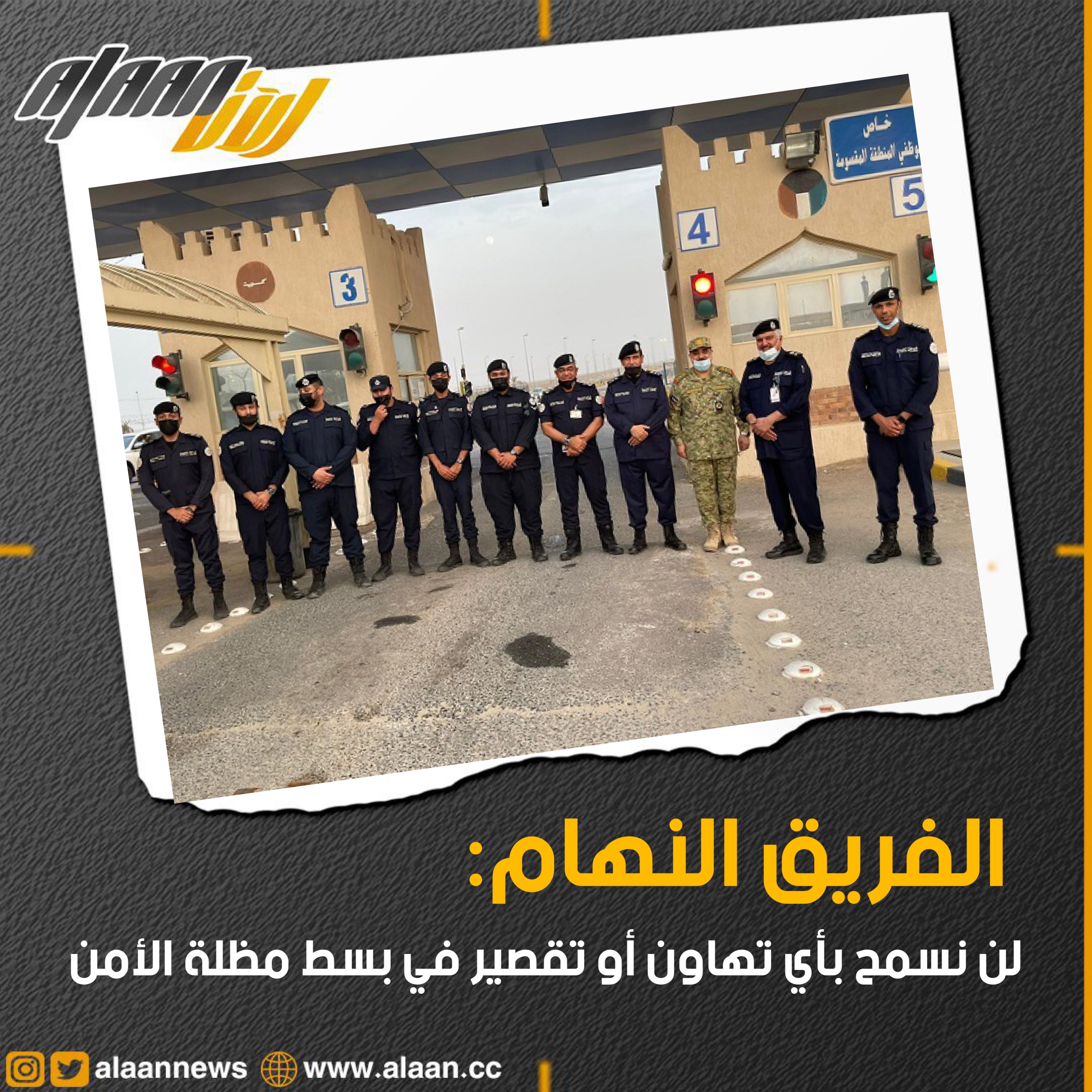 وفي بداية الزيارة نقل الفريق النهام تحيات وتهاني وزير الداخلية الشيخ ثامر العلي بمناسبة عيد الأضحى المبارك، ثم تفقد سير العمل الأمني ووقف على تطبيق الاشتراطات والإجراءات الاحترازية.
