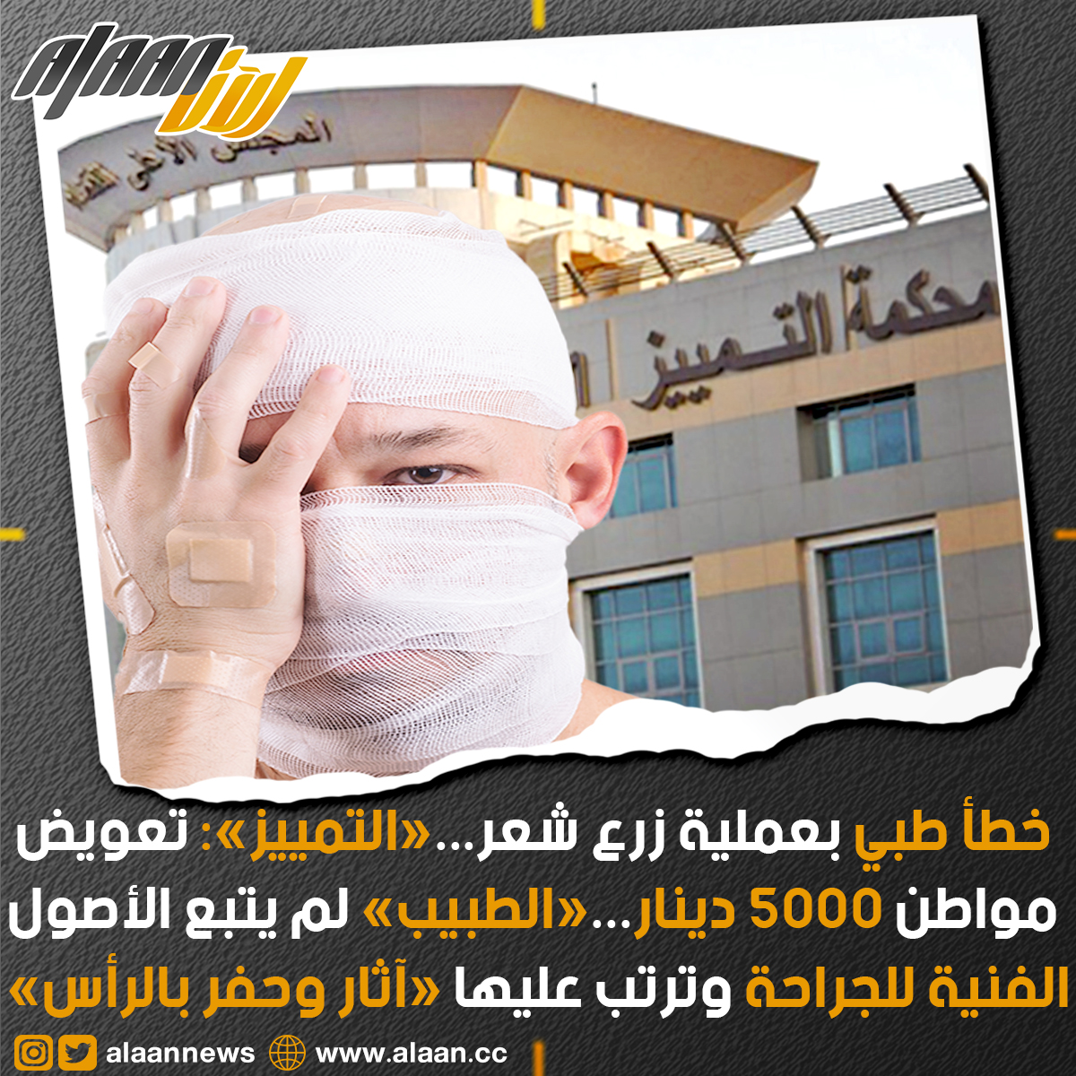 وكانت الدعوى المقامة من مواطن رفعها ضد مستشفى خاص، طالبا التعويض بمبلغ 9 آلاف دينار، وقال في داعواه انه اتفق مع المستشفى على اجراء عملية جراحية لزراعة الشعر بعد أن أكد له الطبيب التابع له ضمان نتائجها، وقام بسداد ۳۰۰۰ دينار في مقابل ذلك، وبعد أن أجريت له العملية لم ينبت له شعر، وتخلف لديه من إجرائها آثار وحفر برأسه، وكان ذلك ناجما عن خطأ الطبيب، إذ لم يتبع الأصول الفنية للجراحة، وقد ألحق به ذلك أضرارا مادية وأدبية، فقد أقام الدعوى، وندبت المحكمة خبيراً، وبعد أن أودع تقريره، حكمت بإلزام المستشفى أن يؤدي إلى المواطن مبلغ 5000 دينار، استأنف المواطن هذا الحكم كما استأنفه المطعون ضده فرعيا، وقضت المحكمة في موضوع الاستئنافين بإلغاء الحكم المستأنف وبرفض الدعوى، وطعن الطاعن في هذا الحكم بطريق التمييز، وأودعت النيابة مذكرة أبدت فيها الرأي برفض الطعن.