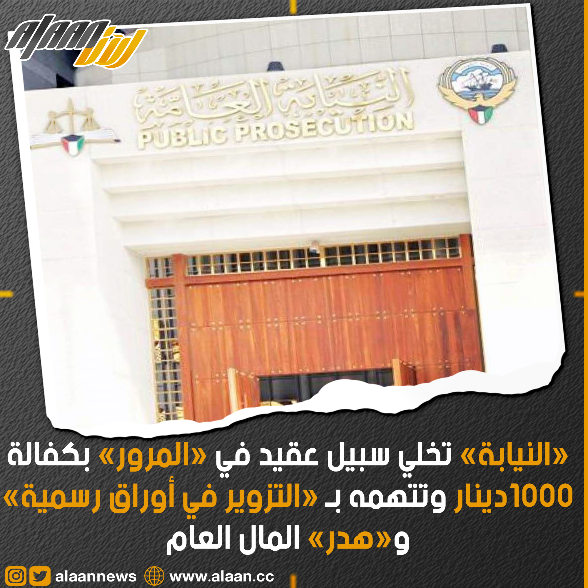 النيابة توجه تهمتي التزوير وهدر المال العام لعقيد بالمرور أثر تجديد دفاتر بعض المركبات رغم تواجدها خارج #الكويت وتخلي سبيله بكفالة 1000 دينار