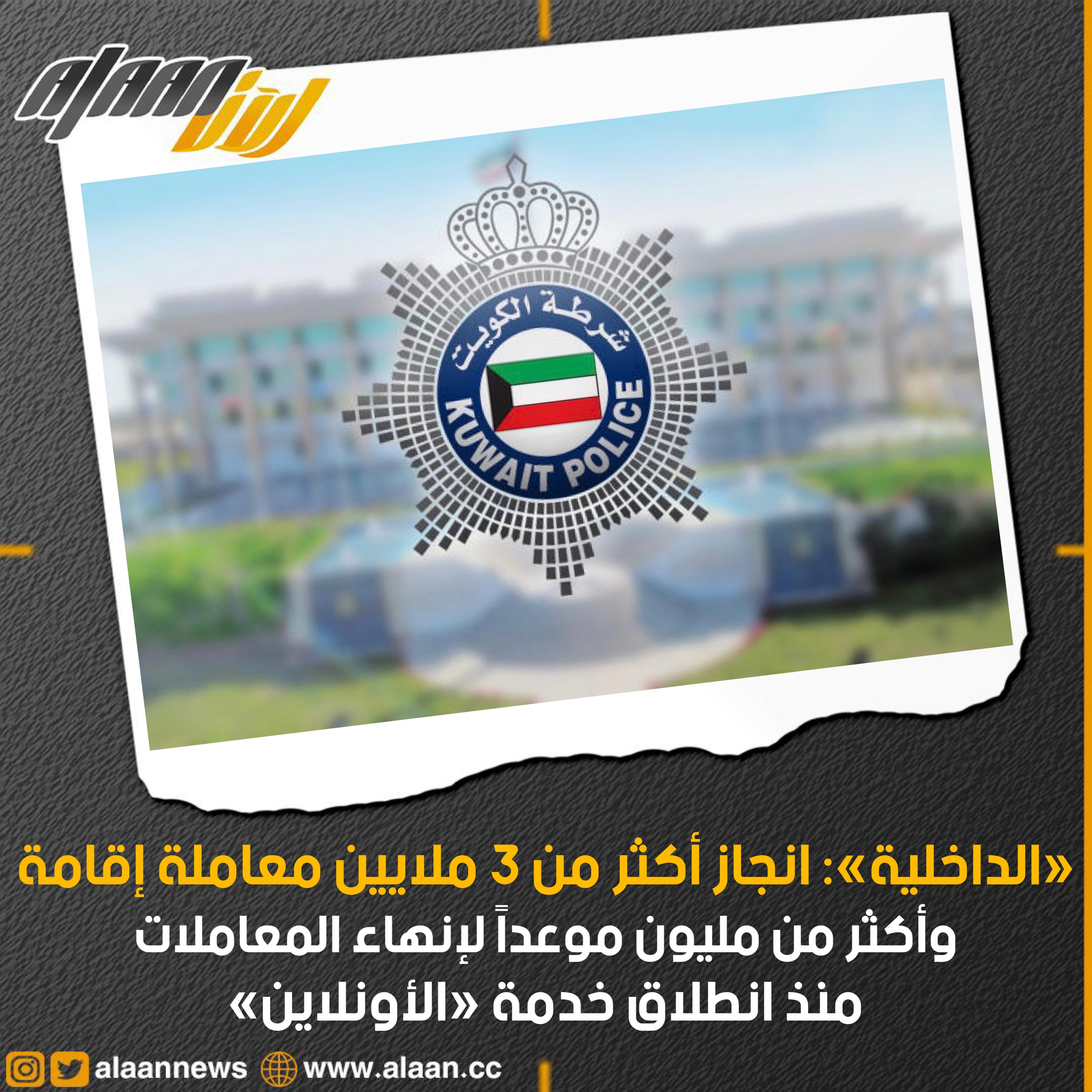 ذكرت الإدارة العامة للعلاقات والإعلام الأمني بوزارة الداخلية أنه نظراً للظروف الراهنة التي تمر بها البلاد في مواجهة انتشار فيروس كورونا وتطبيق الاشتراطات الصحية حرصا على صحة المواطنين والمقيمين، ووفق الجهود التي تبذلها المؤسسة الأمنية لتطوير قطاعاتها الخدمية، فأنها تواصل استقبال المراجعين الراغبين في إنهاء خدماتهم عن طريق «الأونلاين»، عبر موقع وزارة الداخلية الالكتروني «moi.gov.kw».