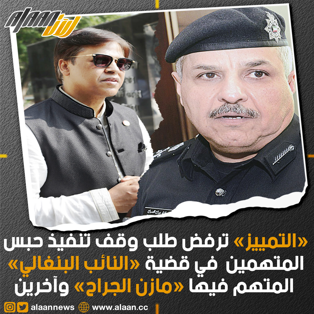 رفضت محكمة التمييز طلب وقف تنفيذ حبس المتهمين في قضية النائب البنغالي المتهمين فيها الشيخ اللواء مازن الجراح واخرين.
