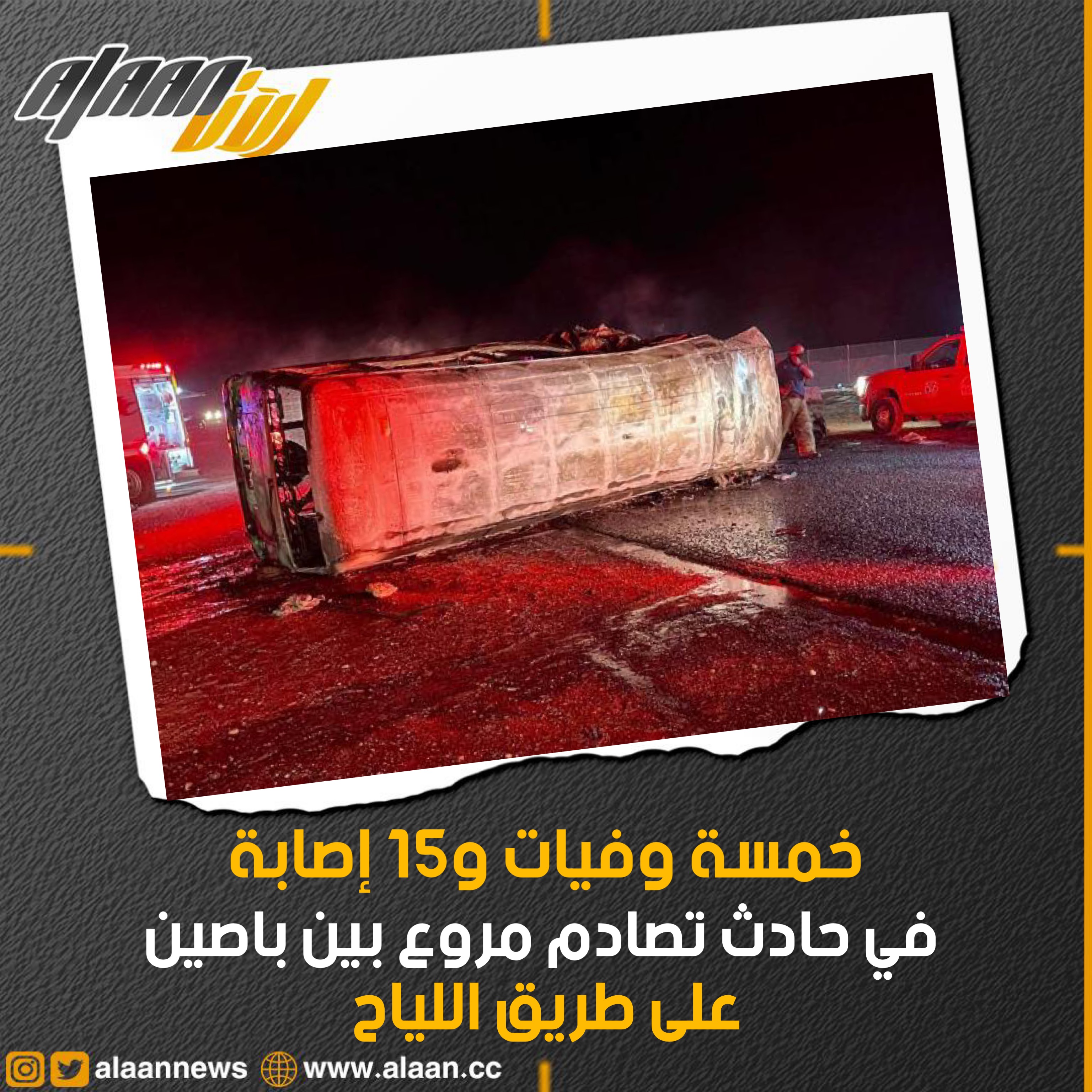 خمسة وفيات و15 إصابة في حادث تصادم مروع بين باصين على طريق اللياح