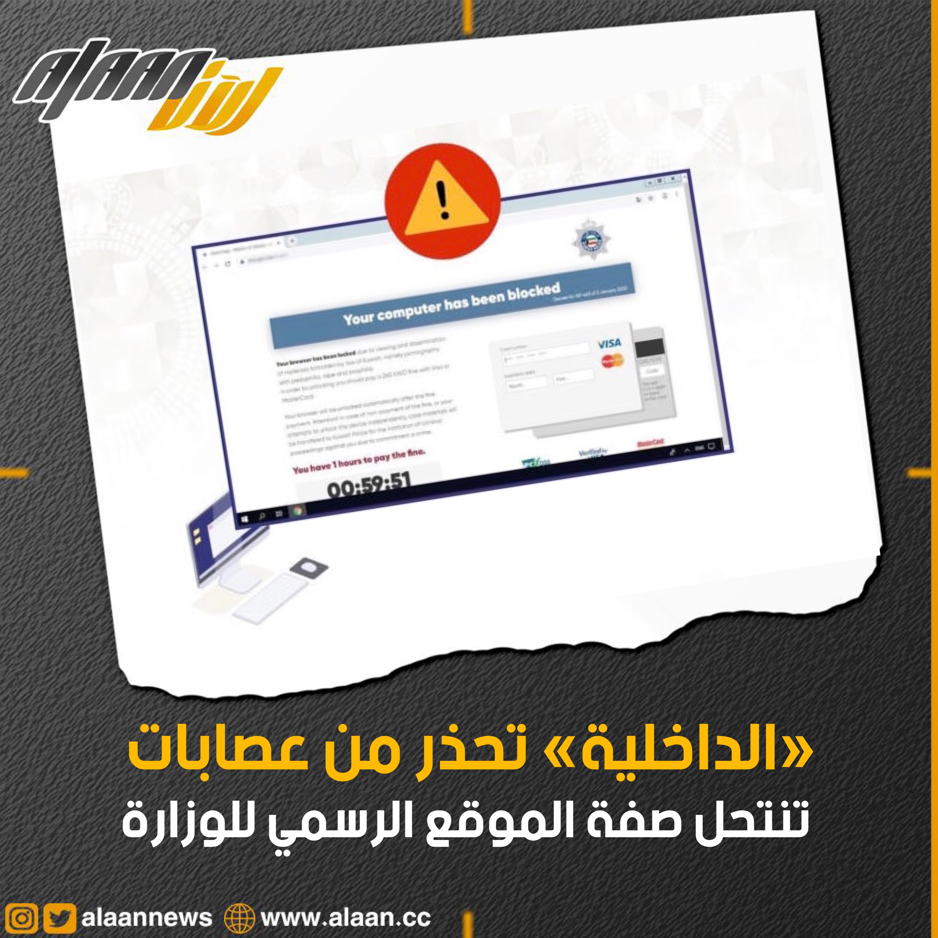 حذرت وزارة الداخلية المواطنين والمقيمين من عصابات تقوم بانتحال صفة الموقع الرسمى للوزارة وتقوم بطلب البيانات البنكية لزائري الموقع المزيف بحجة رفع الحظر عن مخالفات تم ارتكابها.