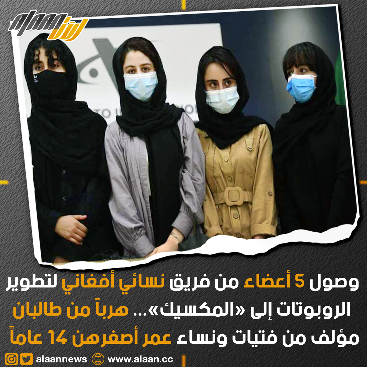 وصل خمسة أعضاء من فريق نسائي أفغاني لتطوير الروبوتات إلى المكسيك مساء أمس هربا من مستقبل يكتنفه الغموض بعد انهيار الحكومة المدعومة من الولايات المتحدة واستيلاء حركة طالبان المتشددة على السلطة.