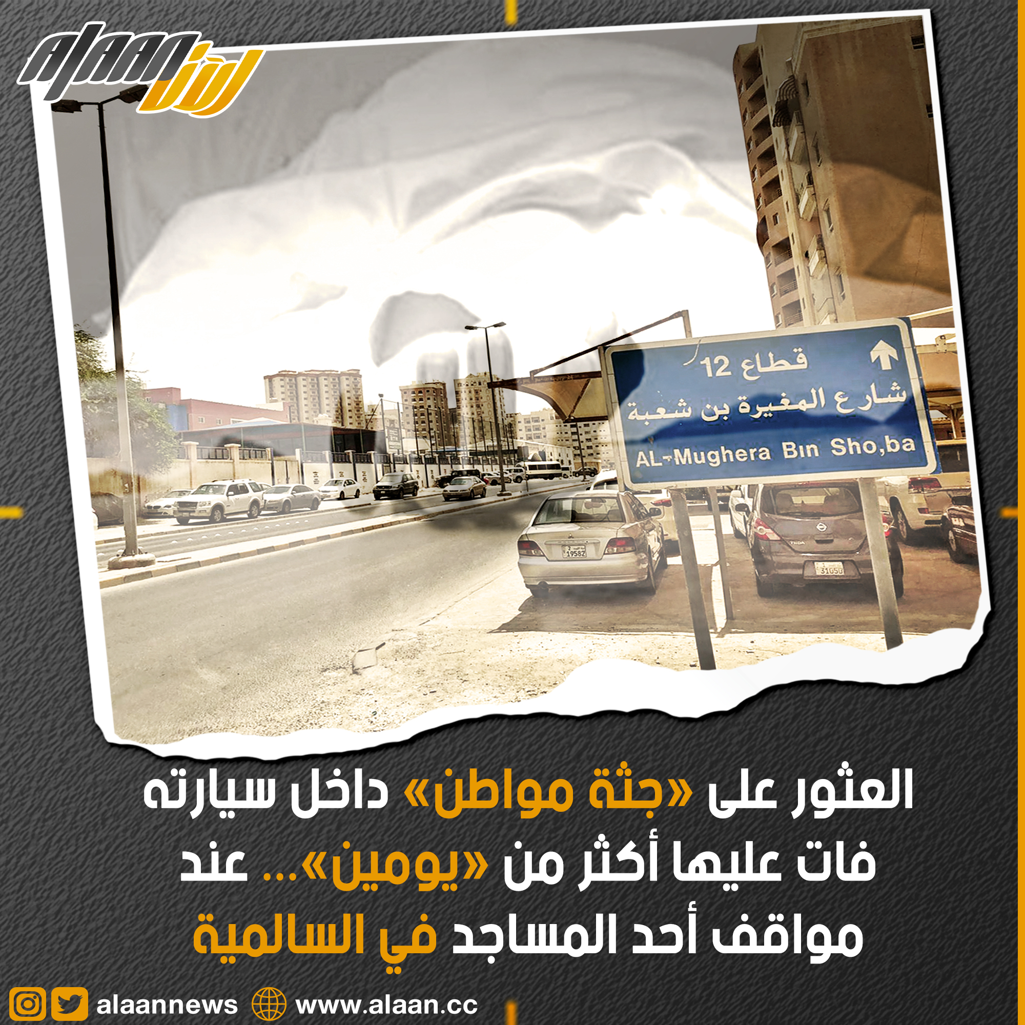 عُثر على جثة مواطن داخل سيارته عند مواقف أحد المساجد، بمنطقه السالمية، وذلك بعد أن أبلغ أحد المصلين عمليات الداخلية.