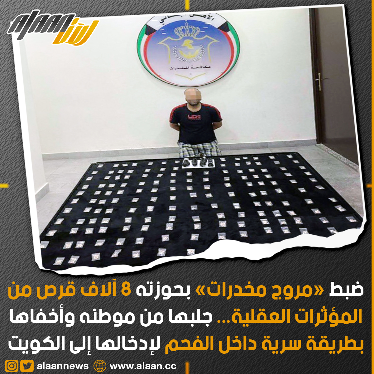 وفي التفاصيل، فقد وردت معلومات إلى الإدارة العامة لمكافحة المخدرات تفيد بأن وافدا من جنسية آسيوية يقوم بجلب أقراص الميثادون المؤثرة عقلياً إلى البلاد بقصد الاتجار، وعليه تم تكثيف التحريات وجمع المعلومات، وبعد التأكد من صحتها واتخاذ الإجراءات القانونية تم ضبطه في منطقة الرقعي وعثر بحوزته على نحو (8) آلاف قرص من المؤثرات العقلية، وبعد مواجهة المتهم بالمعلومات والمضبوطات أقر بأنها تخصه بقصد الإتجار، وأنه قام بجلبها من موطنه عن طريق إخفائها بطريقة سرية داخل الفحم لإدخالها إلى البلاد.