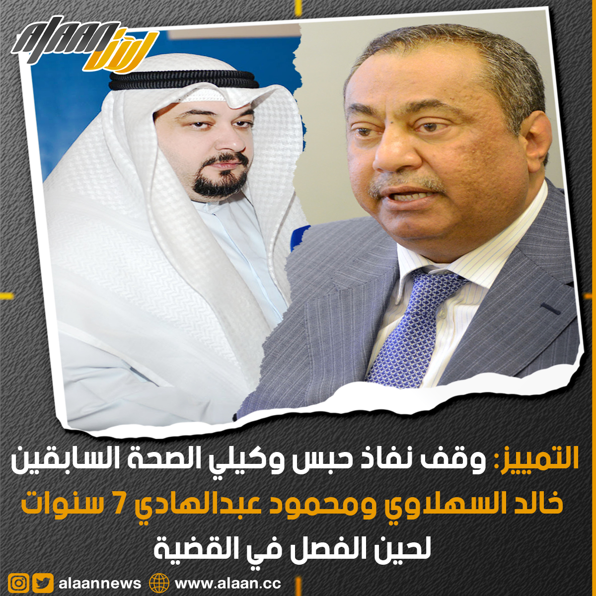 أوقفت محكمة التمييز نفاذ الحكم الصادر بحبس وكيلي وزارة الصحة السابقين خالد السهلاوي ومحمود عبدالهادي 7 سنوات لحين الفصل في القضية.