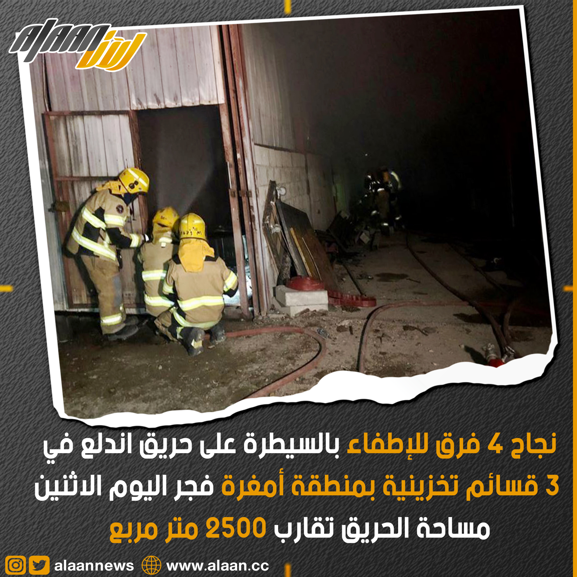 #الإطفاء: السيطرة على #حريق في قسائم تخزينية بمنطقة #أمغرة