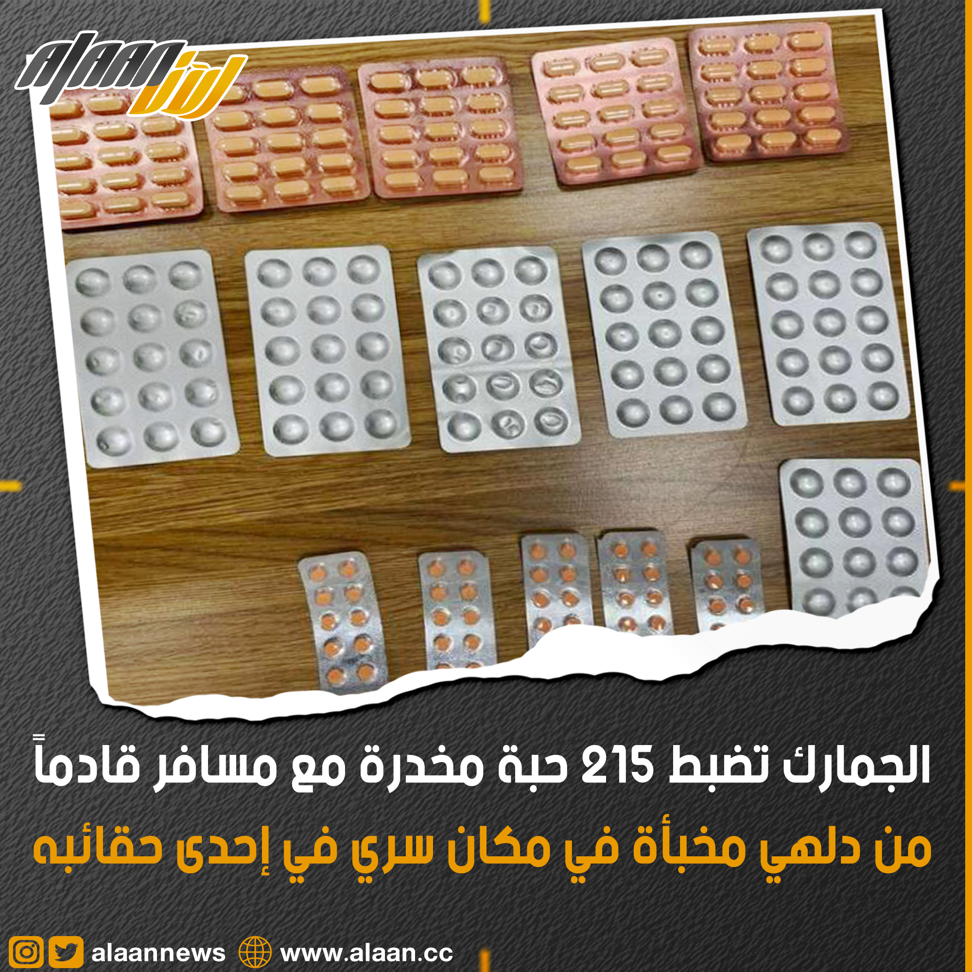 ضبط 215 حبة مخدرة مع مسافر قادم من #دلهي