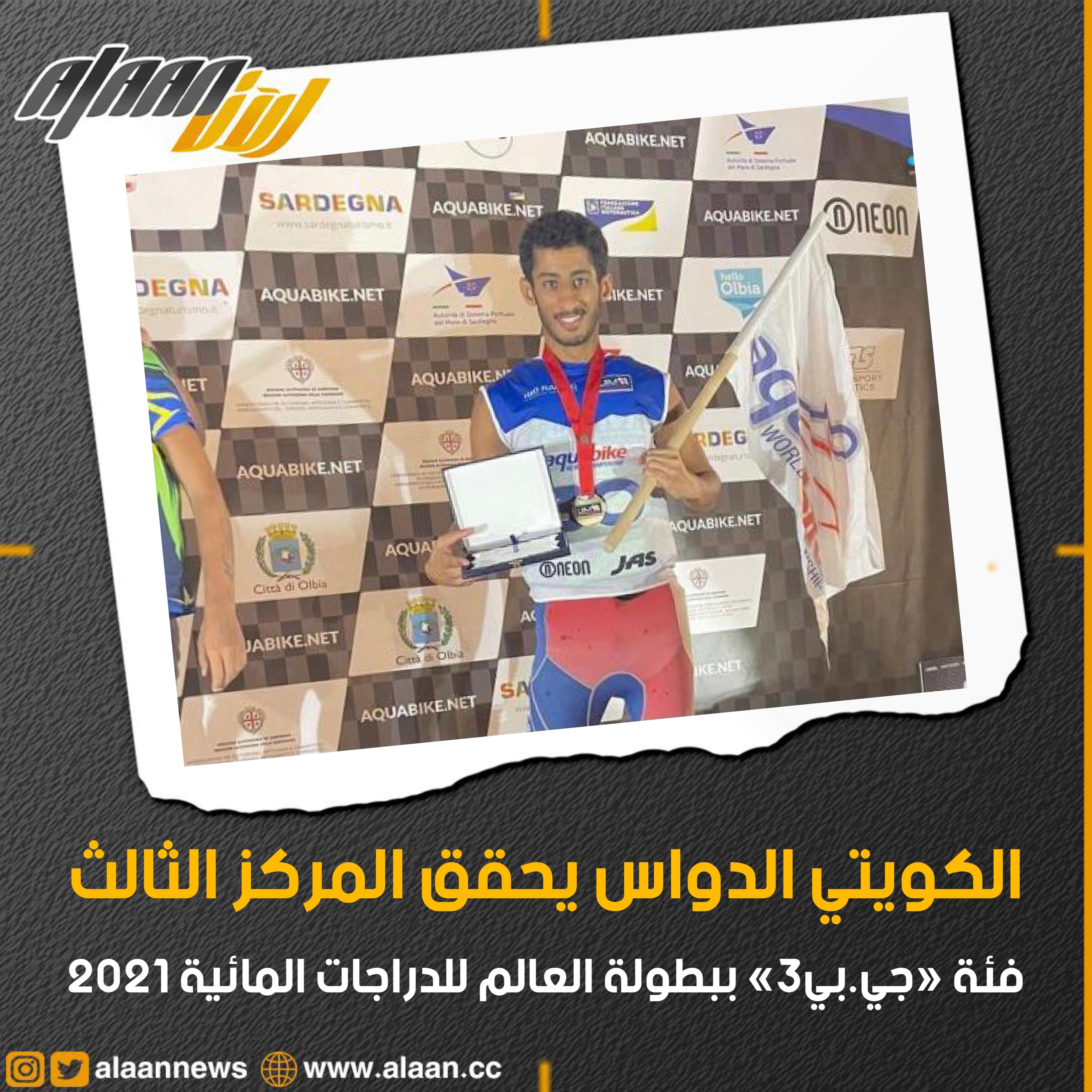 حقق المتسابق الكويتي راشد الدواس المركز الثالث في فئة «جي.بي3» ضمن منافسات الجولة الأولى من بطولة العالم للدراجات المائية 2021 والتي اختتمت منافساتها مساء اليوم الاحد في جزيرة ساردينيا الايطالية.