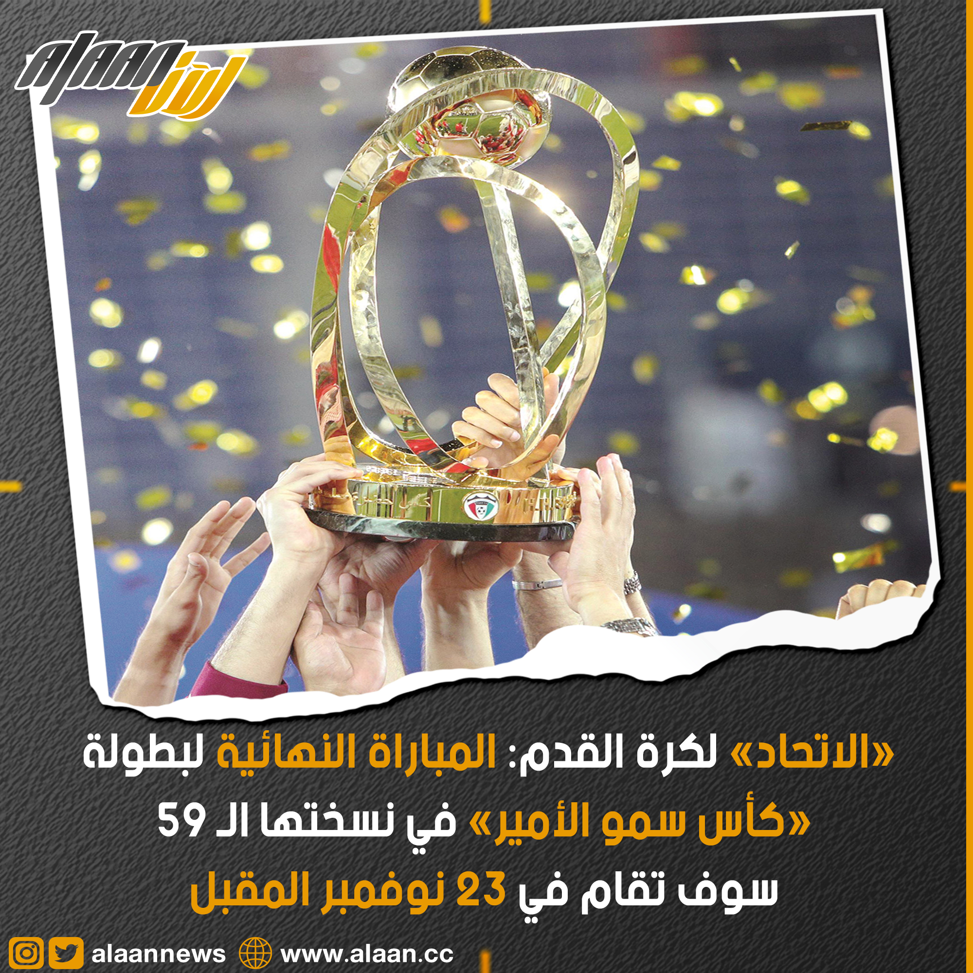 أعلن رئيس الاتحاد الكويتي لكرة القدم الشيخ أحمد اليوسف الصباح أن نهائي بطولة كأس سمو الامير لكرة القدم في نسختها الـ 59 يوم 23 نوفمبر المقبل.