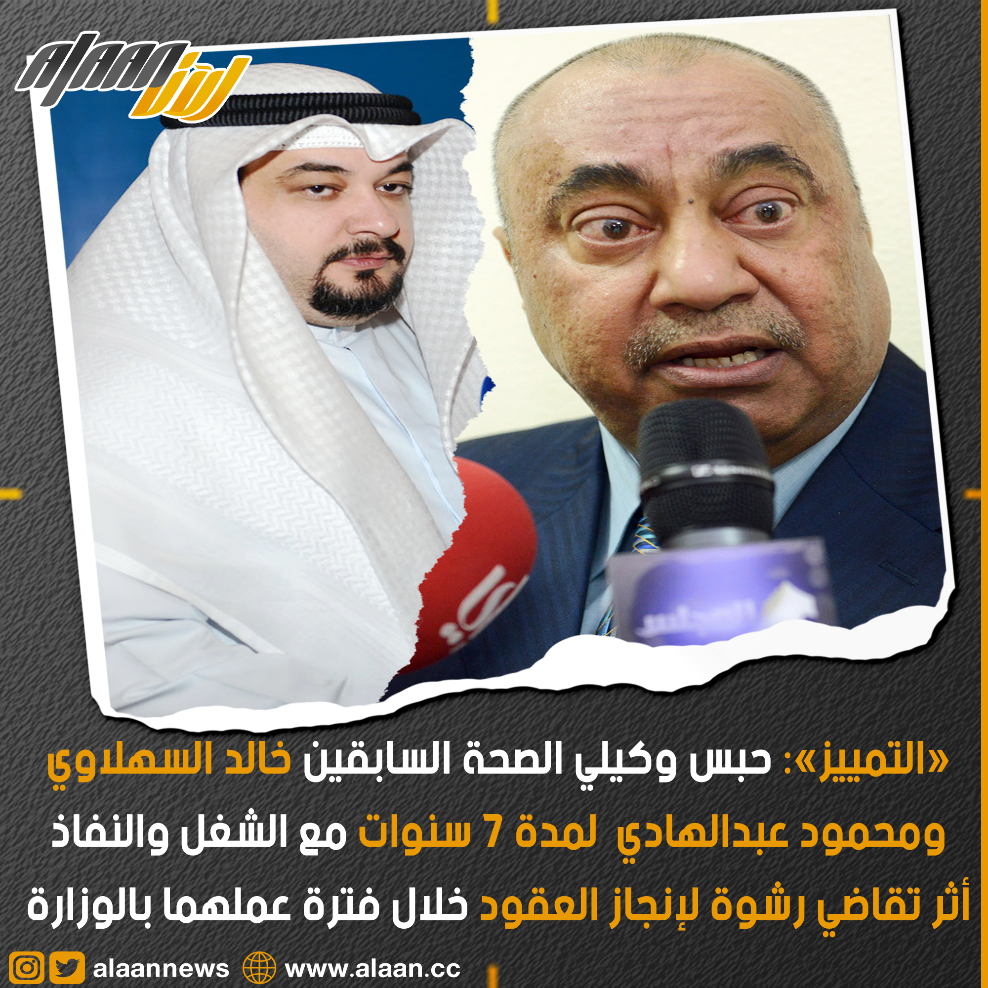 أيدت محكمة «التمييز» حكم محكمة الاستئناف بحبس وكيلي وزارة الصحة السابقين خالد السهلاوي ومحمود عبدالهادي، 7 سنوات مع الشغل والنفاذ.