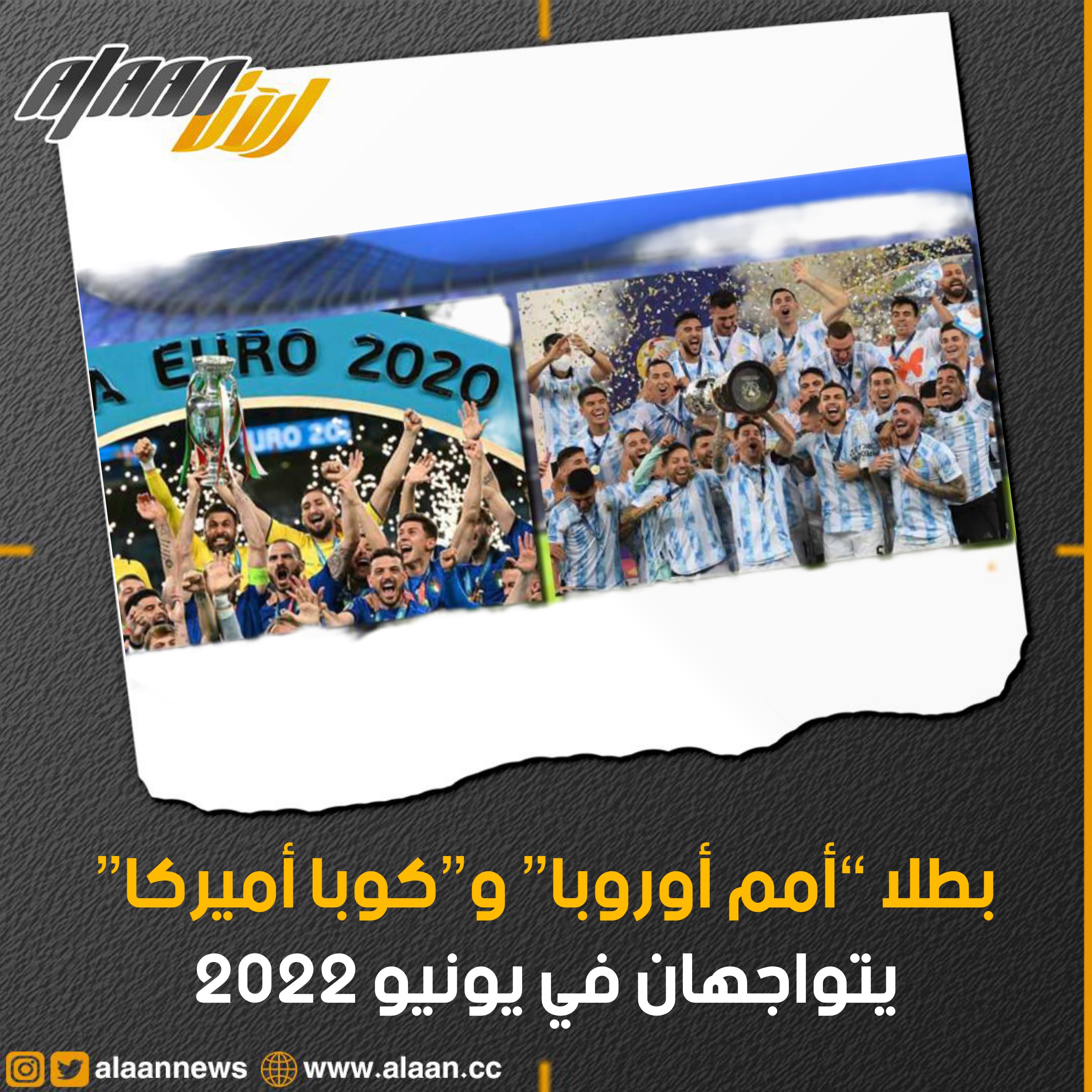 سيواجه المنتخب الإيطالي المتوج بكأس أوروبا لكرة القدم نظيره الارجنتيني الفائز بمسابقة كوبا أميركا في يونيو 2022، وذلك بحسب ما أعلن الاتحاد الاوروبي للعبة «ويفا» ونظيره الاميركي الجنوبي «كونميبول».