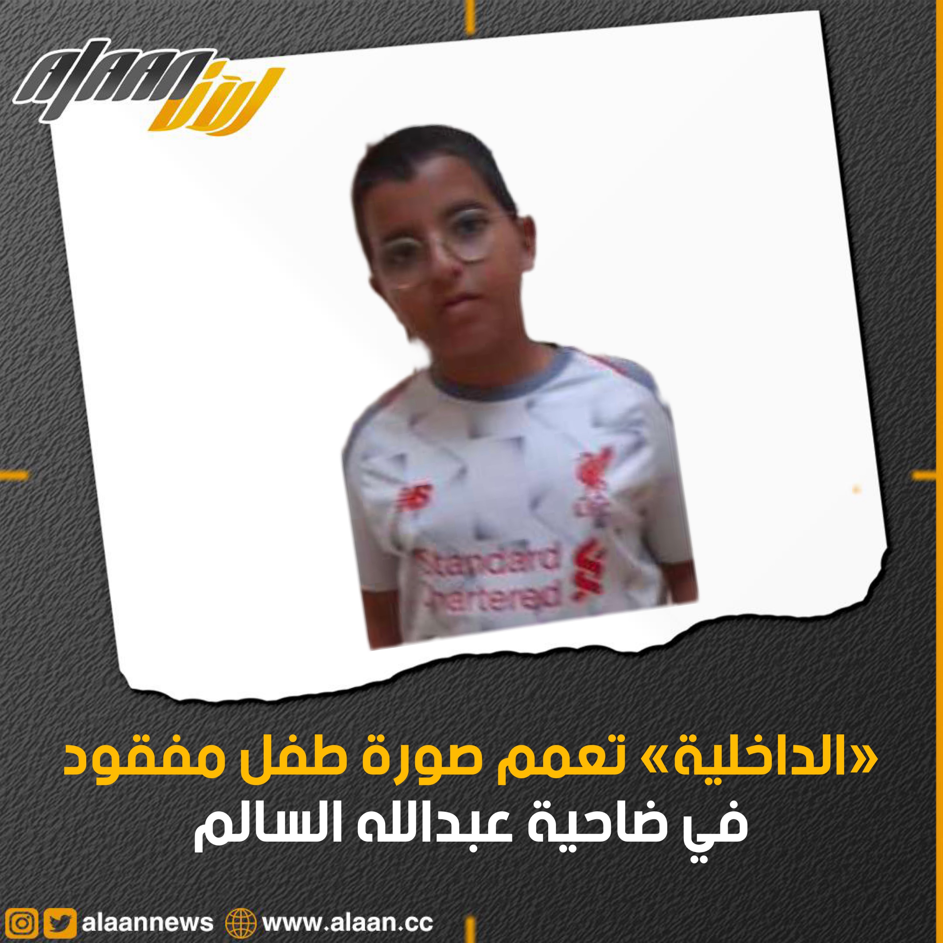 ذكرت الإدارة العامة للعلاقات والإعلام الأمني بوزارة الداخلية أنه يوجد طفل مفقود في منطقة ضاحية عبدالله السالم.