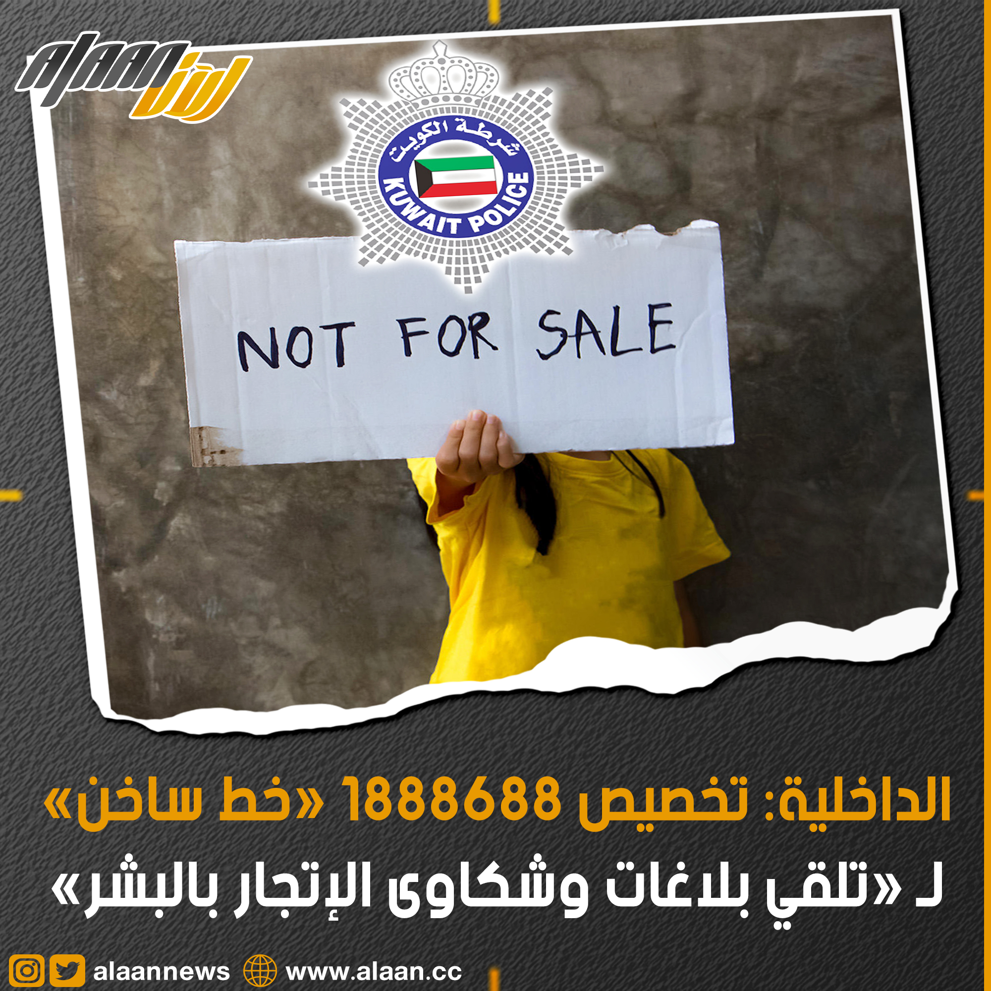 أعلنت الإدارة العامة للمباحث الجنائية - إدارة حماية الآداب العامة ومكافحة الاتجار بالأشخاص عن تخصيص خط ساخن لتلقي بلاغات وشكاوى الاتجار بالأشخاص، هو: 1888688.