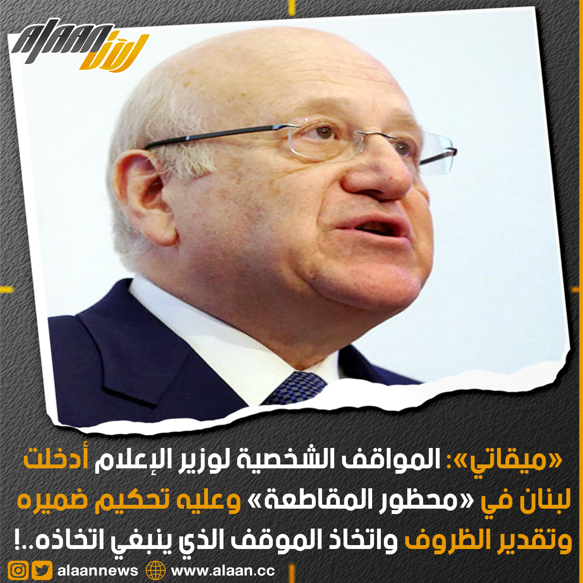 وقال ميقاتي في خطاب عام "أكرر دعوة وزير الاعلام الى تحكيم ضميره وتقدير الظروف واتخاذ الموقف الذي ينبغي اتخاذه".