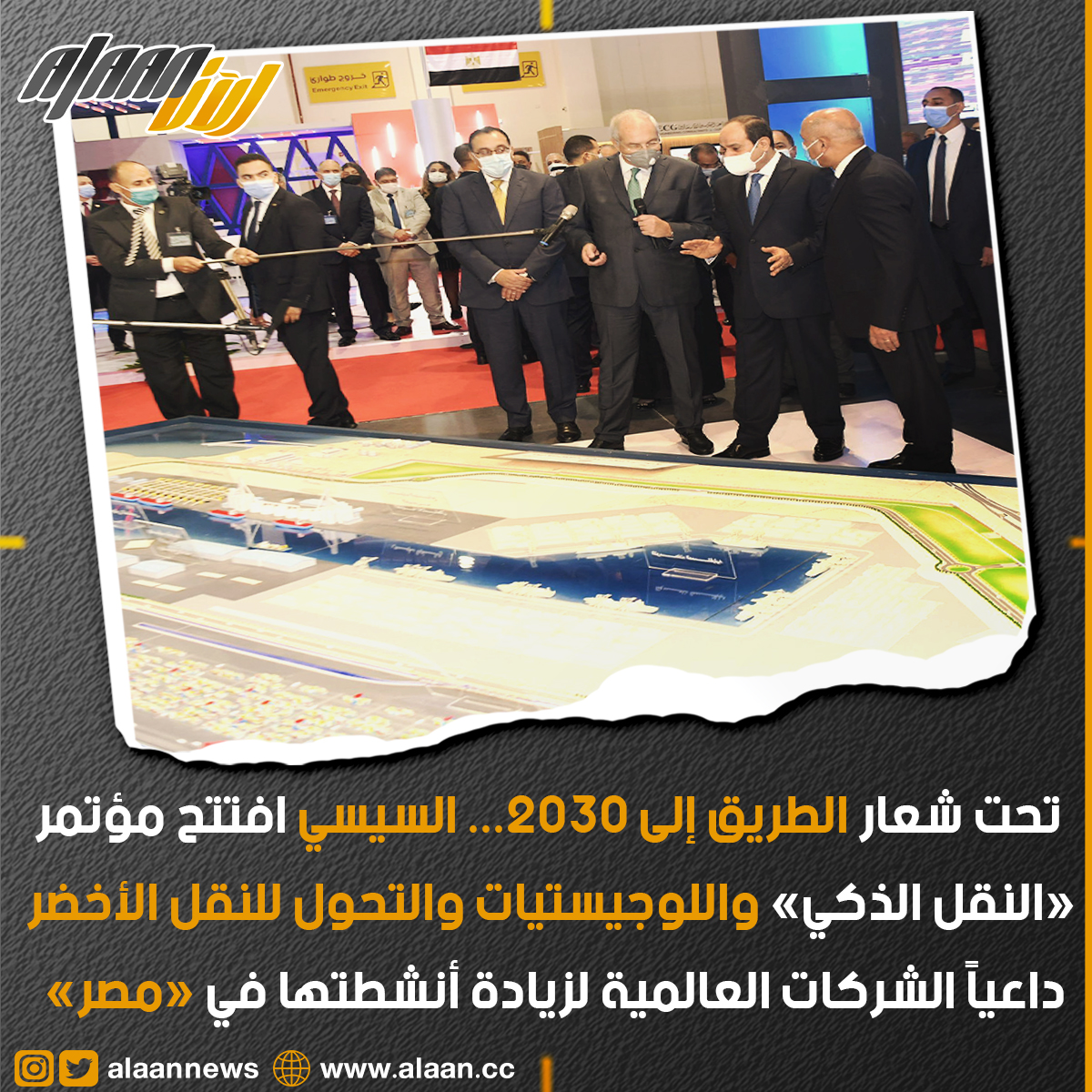 وافتتح السيسي، أمس، فعاليات الدورة الرابعة لمعرض ومؤتمر النقل الذكي واللوجيستيات والتحول للنقل الأخضر، الذي تنظمه وزارة النقل في الفترة من 7 إلى 10 نوفمبر (تشرين الثاني) الحالي، بالقاهرة.